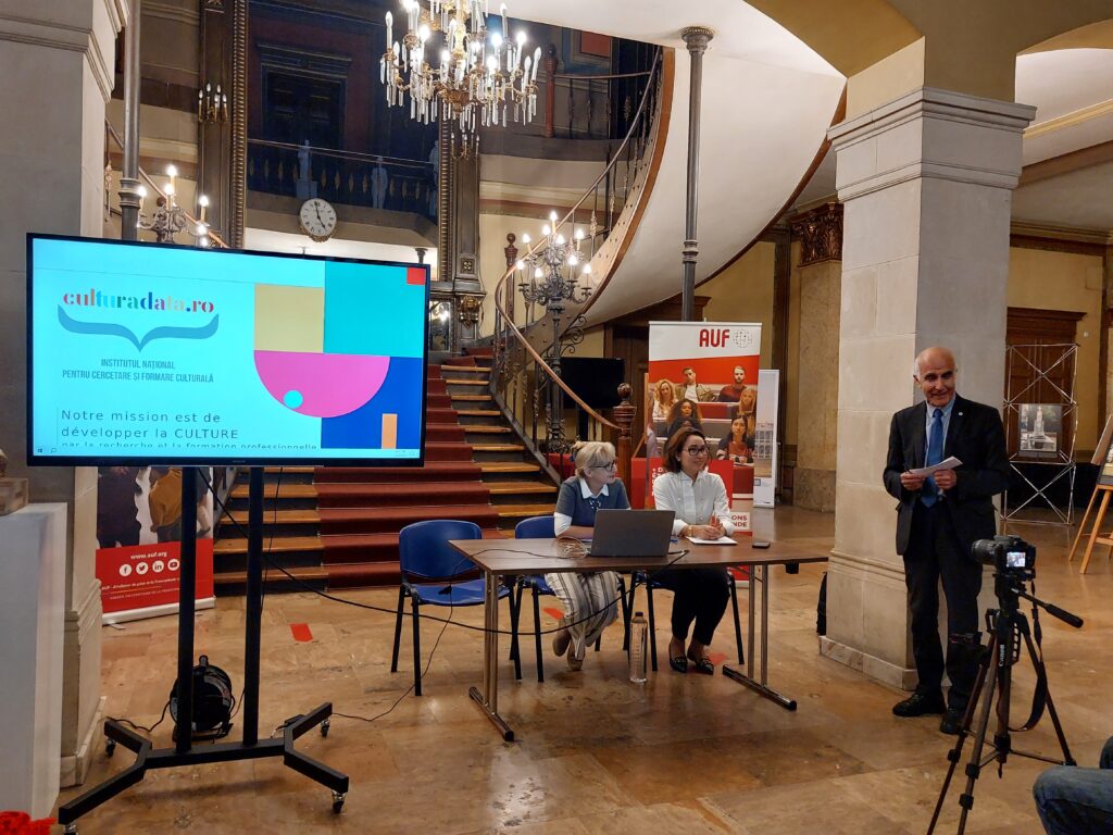 L’invitée de la soirée dr. Carmen Croitoru, directrice générale de l’Institut National pour la Recherche et la Formation dans le domaine de la Culture et maître de conférences à l’Université Nationale d’Art Théâtrale et Cinématographique de Bucarest a présenté aux jeunes le rôle de l’éducation pour la culture et de la culture pour l’éducation, le besoin d’introduire un curriculum sur l’éducation culturelle. Les échanges ont été enrichissants et ont portés également sur les défis de l’entrepreneuriat culturel.