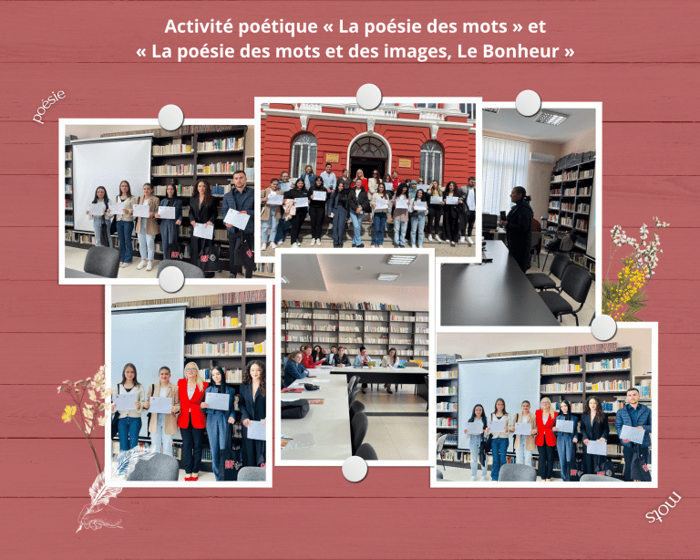 Le Département de français de l’Université de Tirana en partenariat avec le Bureau national AUF-Albanie a organisé une activité poétique avec la création des étudiants de FLE : « La poésie des mots » et « La poésie des mots et des images, Le Bonheur ». L’événement s’est clôturé avec la distribution des prix pour le meilleur poème et la meilleure interprétation.