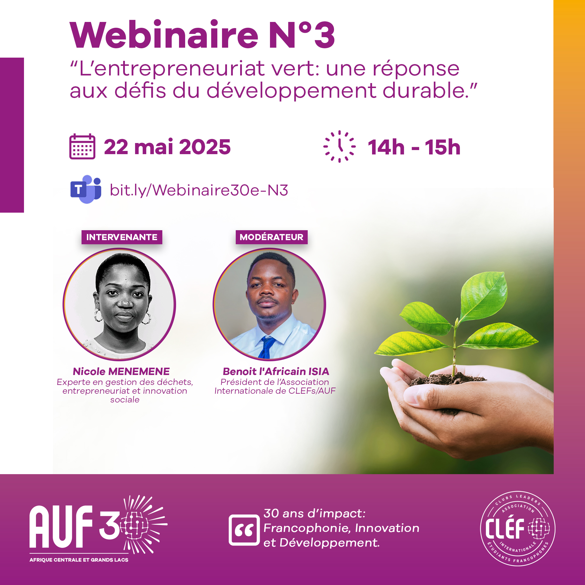 Le troisième webinaire organisé à l'occasion de la célébration du 30e anniversaire de l'AUF - Afrique Centrale et Grands Lacs aura lieu le jeudi 22 mai 2025, à 14h.