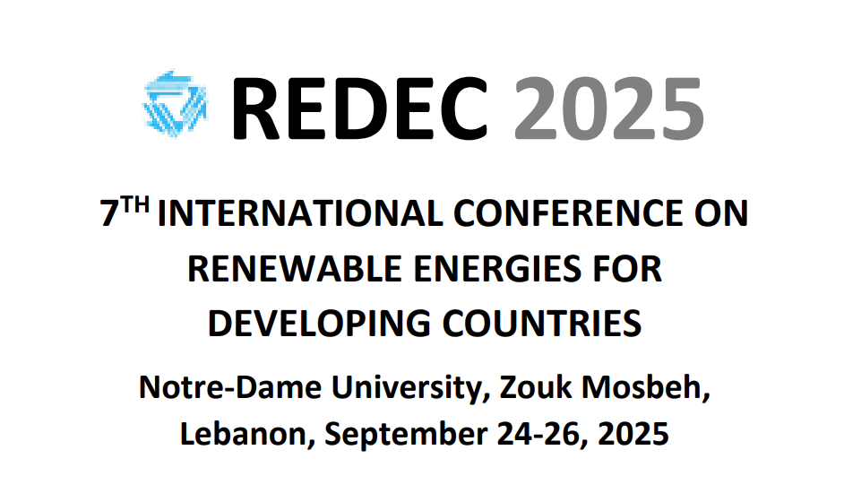 La « 7ème conférence internationale sur les énergies renouvelables dans les pays en développement REDEC 2025 » se tiendra du 24 au 26 septembre 2025, conjointement avec la 6ème Conférence internationale sur les Techniques avancées de calcul numérique pour les applications en ingénierie (ACTEA'25) à l'Université Notre Dame – Louaize, Zouk Mosbeh, Liban. Cette rencontre est soutenue par l’AUF.