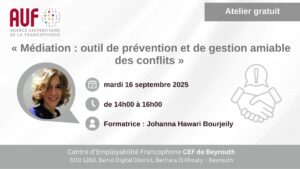 Le Campus Numérique Francophone (CNF) de Rabat de l’AUF - Afrique du Nord, en partenariat avec le Club Les Cultivateurs de l’Espoir, membre du réseau CLEF, organise un atelier sur l’entrepreneuriat digital, le lundi 18 août 2025, de 15h00 à 17h00.