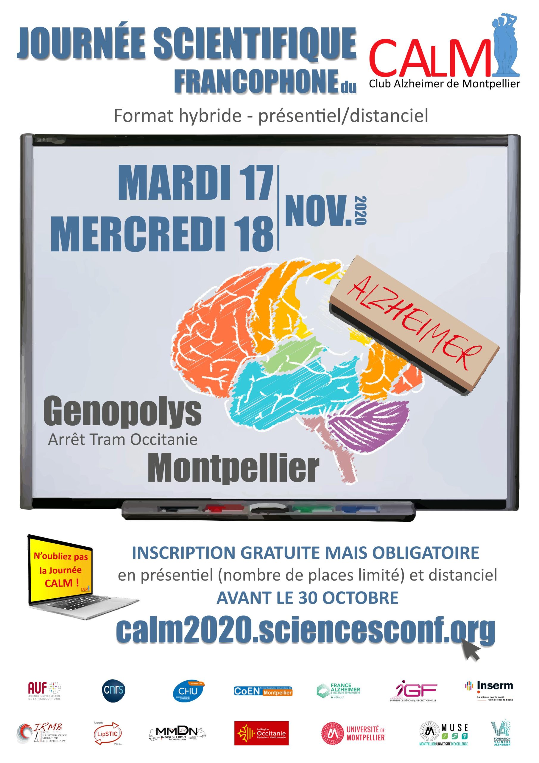 Le Club Alzheimer de Montpellier a le plaisir de vous convier à la 4ème journée scientifique francophone du CALM du Mardi 17 au Mercredi 18 Novembre 2020.