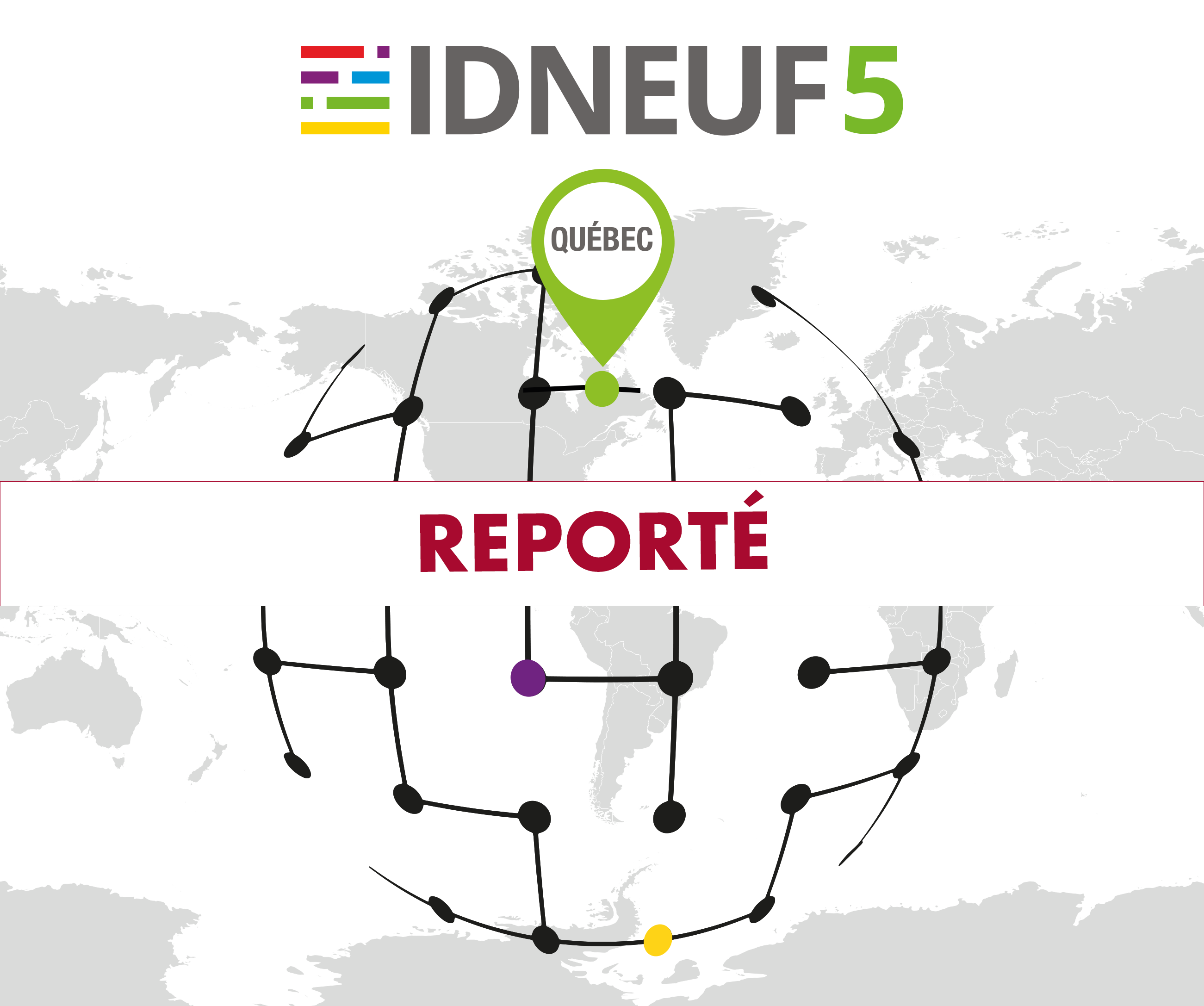 L’ampleur de la crise sanitaire internationale nous contraint à reporter la Conférence annuelle sur le numérique dans l’espace universitaire francophone – IDNEUF5 – prévue les 17, 18 et 19 juin prochain à la Ville de Québec. Nous remercions vivement les équipes du gouvernement du Québec, de l’OIF ainsi que toutes celles de l’AUF qui se sont fortement investies à ce jour dans l’organisation de cet événement important. Nous sommes désolés des inconvénients occasionnés et vous reviendrons dès que possible avec un nouveau calendrier.