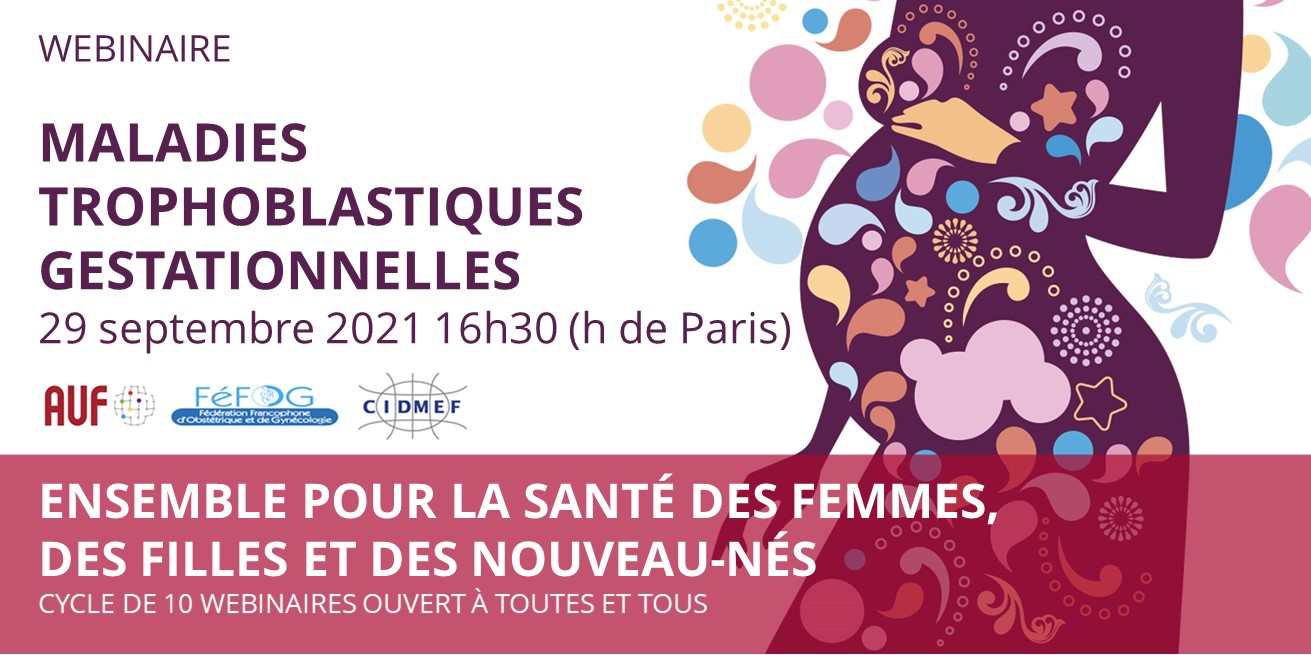 La FéFOG (Fédération Francophone d’Obstétrique et de Gynécologie) propose un programme d’échange par webinaire en partenariat avec l’AUF et avec la Conférence Internationale des Doyens et des Facultés de Médecine d’Expression Française (CIDMEF), réseau membre de l'AUF. A travers les différentes thématiques abordées lors de ce cycle de webinaires, la FéFOG inscrit son action au cœur de l’agenda 2030 et prend à son compte les Objectifs du développement Durable (ODD). Le 8ème webinaire se déroulera le Mercredi 29 Septembre 2021 sur le thème N°8 : Maladies trophoblastiques gestationnelles.