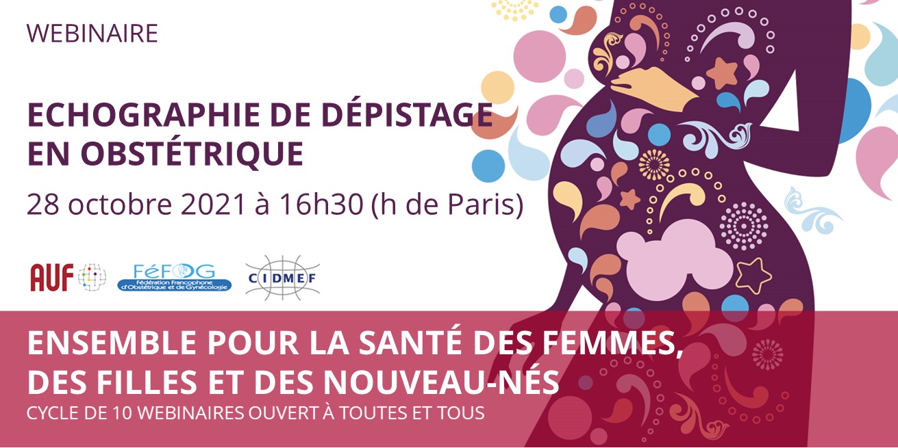 La FéFOG (Fédération Francophone d’Obstétrique et de Gynécologie) propose un programme d’échange par webinaire en partenariat avec l’AUF et avec la Conférence Internationale des Doyens et des Facultés de Médecine d’Expression Française (CIDMEF), réseau membre de l'AUF. A travers les différentes thématiques abordées lors de ce cycle de webinaires, la FéFOG inscrit son action au cœur de l’agenda 2030 et prend à son compte les Objectifs du développement Durable (ODD). Le 9ème webinaire se déroulera le jeudi 28 octobre 2021 sur le thème : Echographie de dépistage en Obstétrique.