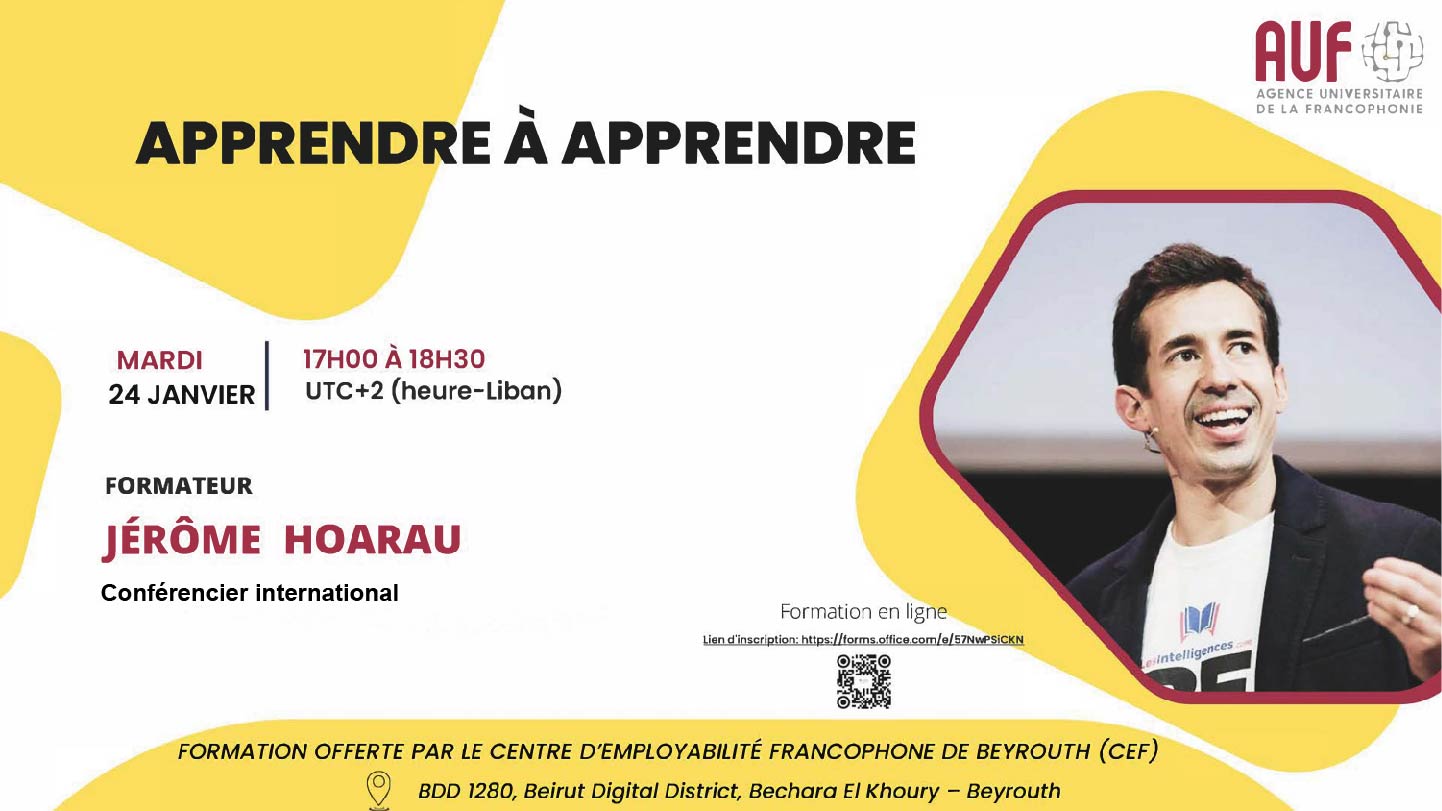 Le Centre d’Employabilité Francophone (CEF) de Beyrouth de l’AUF Moyen-Orient propose un webinaire sur la thématique « Apprendre à apprendre », le 24 janvier à 17h00 (heure de Beyrouth).