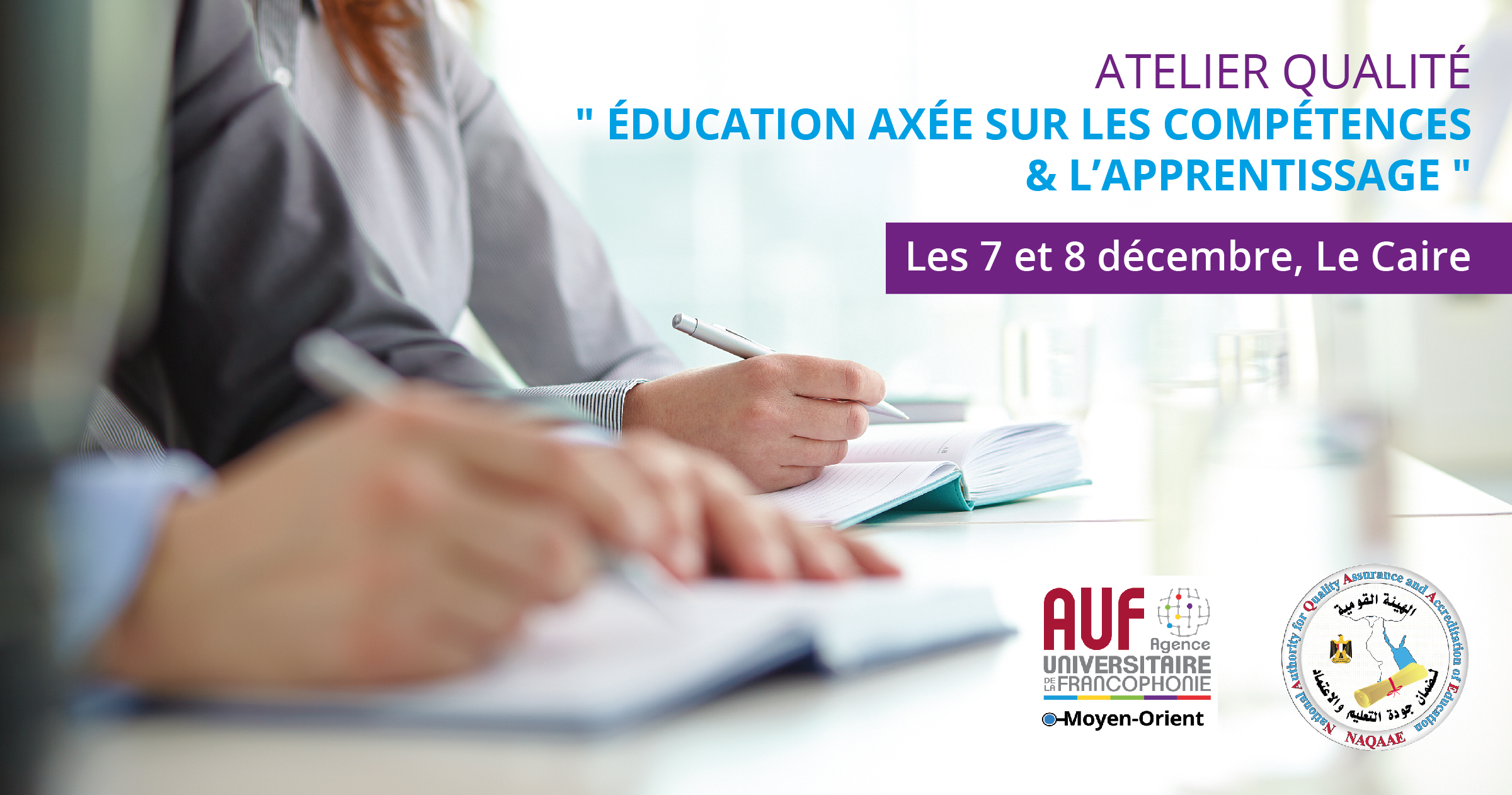 Dans le cadre des ateliers de la qualité en Égypte, la NAQAA (National Authority for Quality Assurance and Accreditation in Egypt) organise, en partenariat avec l'AUF, l'atelier "Competency-Based Education & Learning (CBE & L)" qui aura lieu les 7 et 8 décembre 2019, à l'hôtel Triomphe Masr El Gedida, au Caire.
