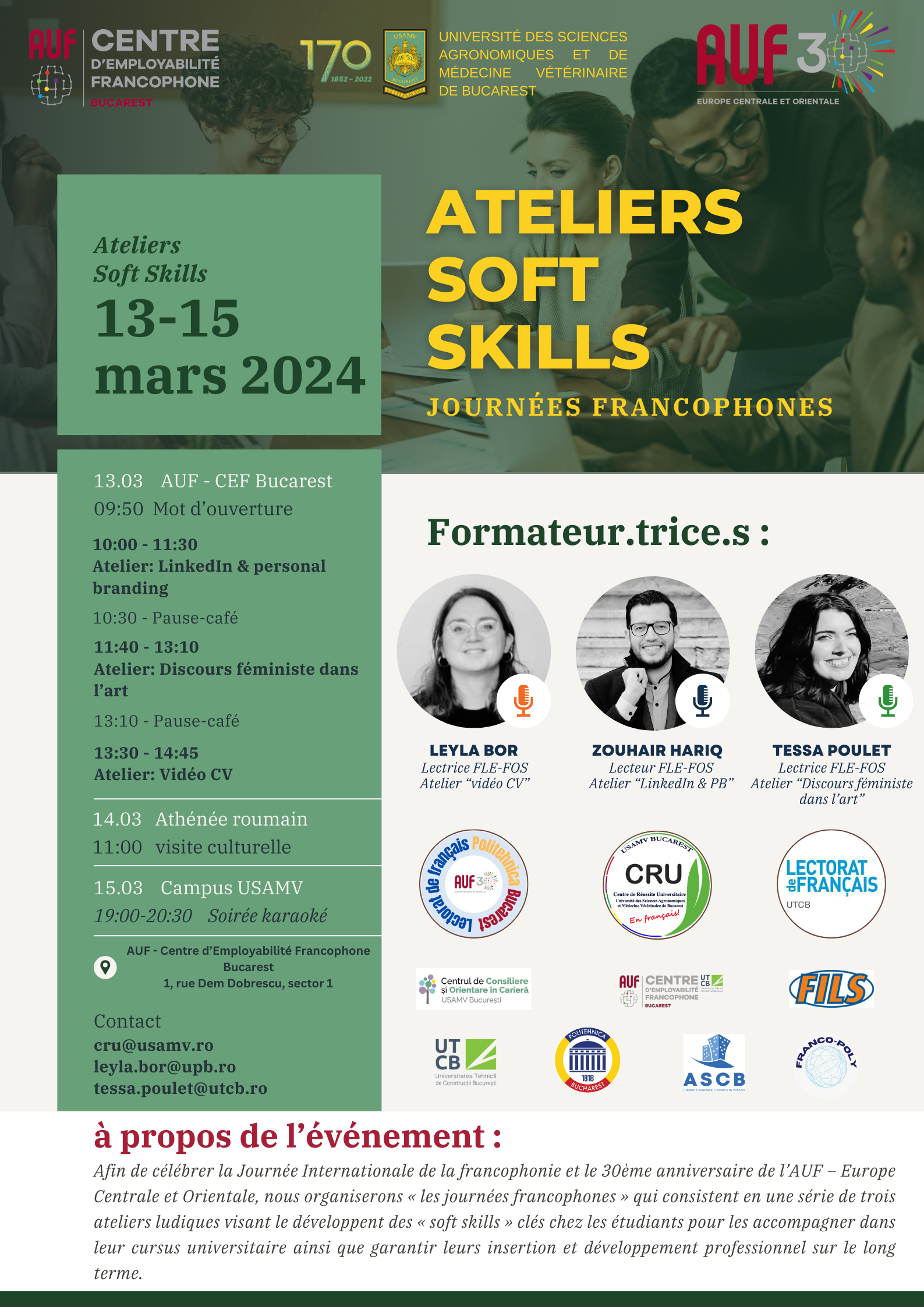 Ateliers de formation Soft skills Journées francophones – CEF Bucarest