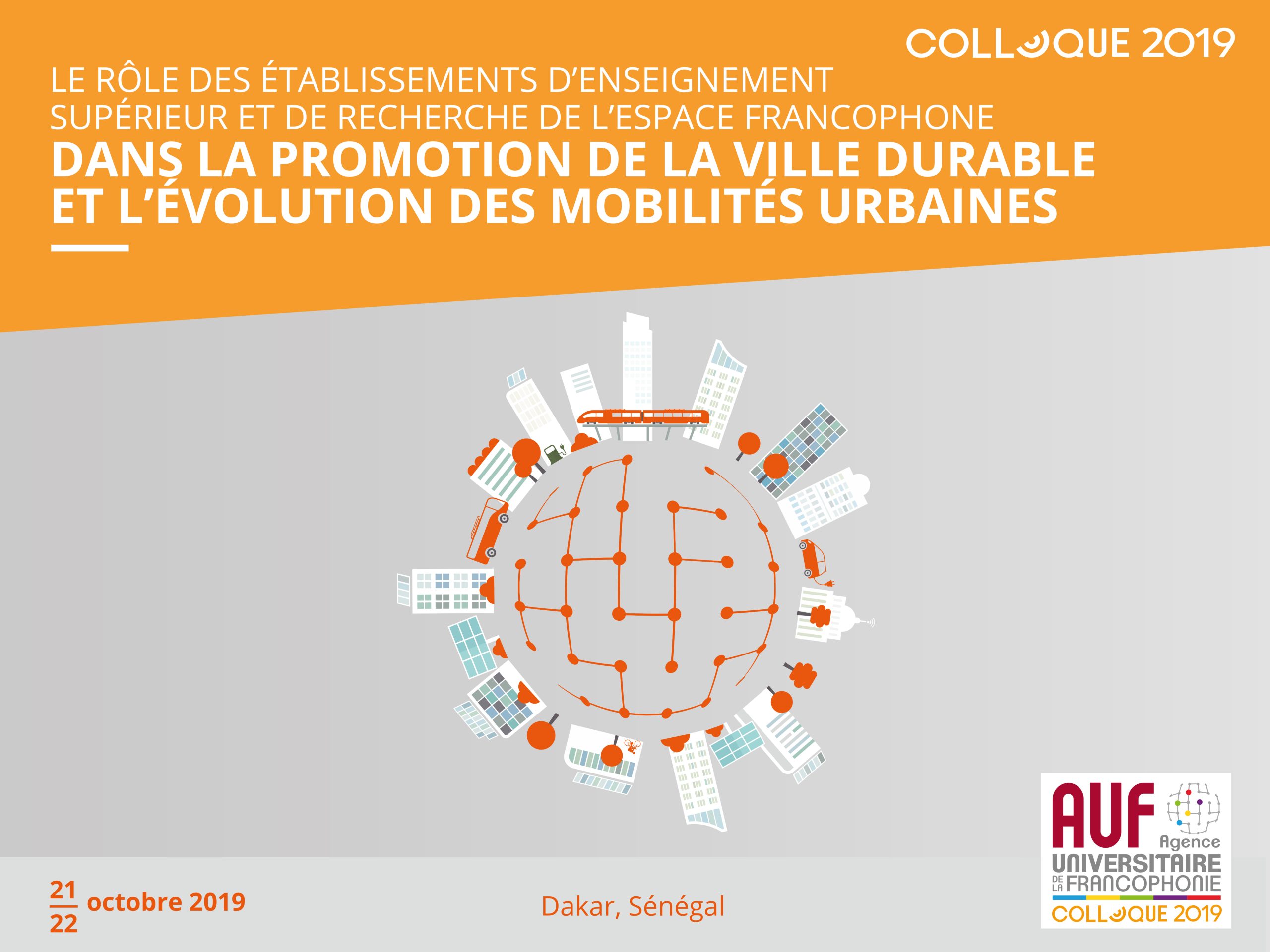 L’AUF et ses partenaires mobilisent chaque année des experts internationaux, académiques et professionnels, issus de toutes les régions de la francophonie pour discuter d’un grand sujet qui concerne l’enseignement supérieur et la recherche. Cette année, le colloque annuel de l'AUF porte sur les questions de développement urbain, et plus précisément sur le rôle susceptible d’être joué par les établissements d’enseignement supérieur et de recherche francophones dans la promotion de la ville durable et l’évolution des mobilités urbaines. Il sera organisé à Dakar, Sénégal, les 21 et 22 octobre 2019. Les inscriptions sont ouvertes.