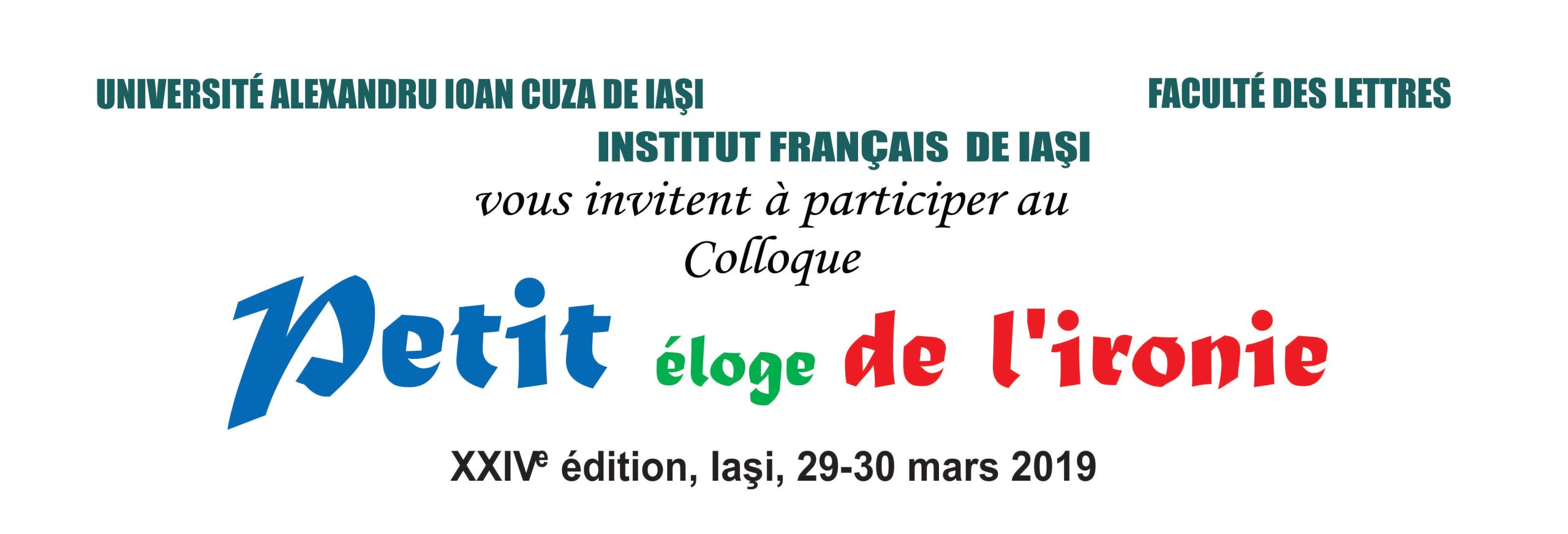Colloque international « Journées de la Francophonie », 24e édition (« Petit éloge de l’ironie ») lași, Roumanie