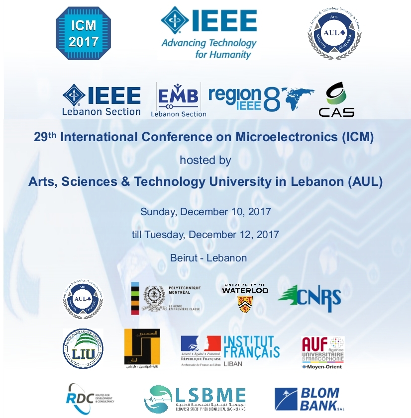 L'Université des Arts, des Sciences et de la Technologie du Liban (AUL) accueillera la Conférence internationale de l'IEEE sur la microélectronique (ICM 2017) du 10 au 12 décembre 2017. L'AUF au Moyen-Orient est partenaire de cet événement.