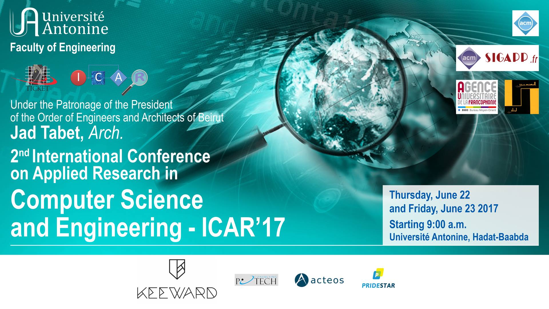 L'Université Antonine organise, avec le soutien de l'AUF, une Conférence internationale sur la recherche appliquée en informatique et en génie (ICAR’17) les 22 et 23 juin 2017 sur son campus de Baabda.