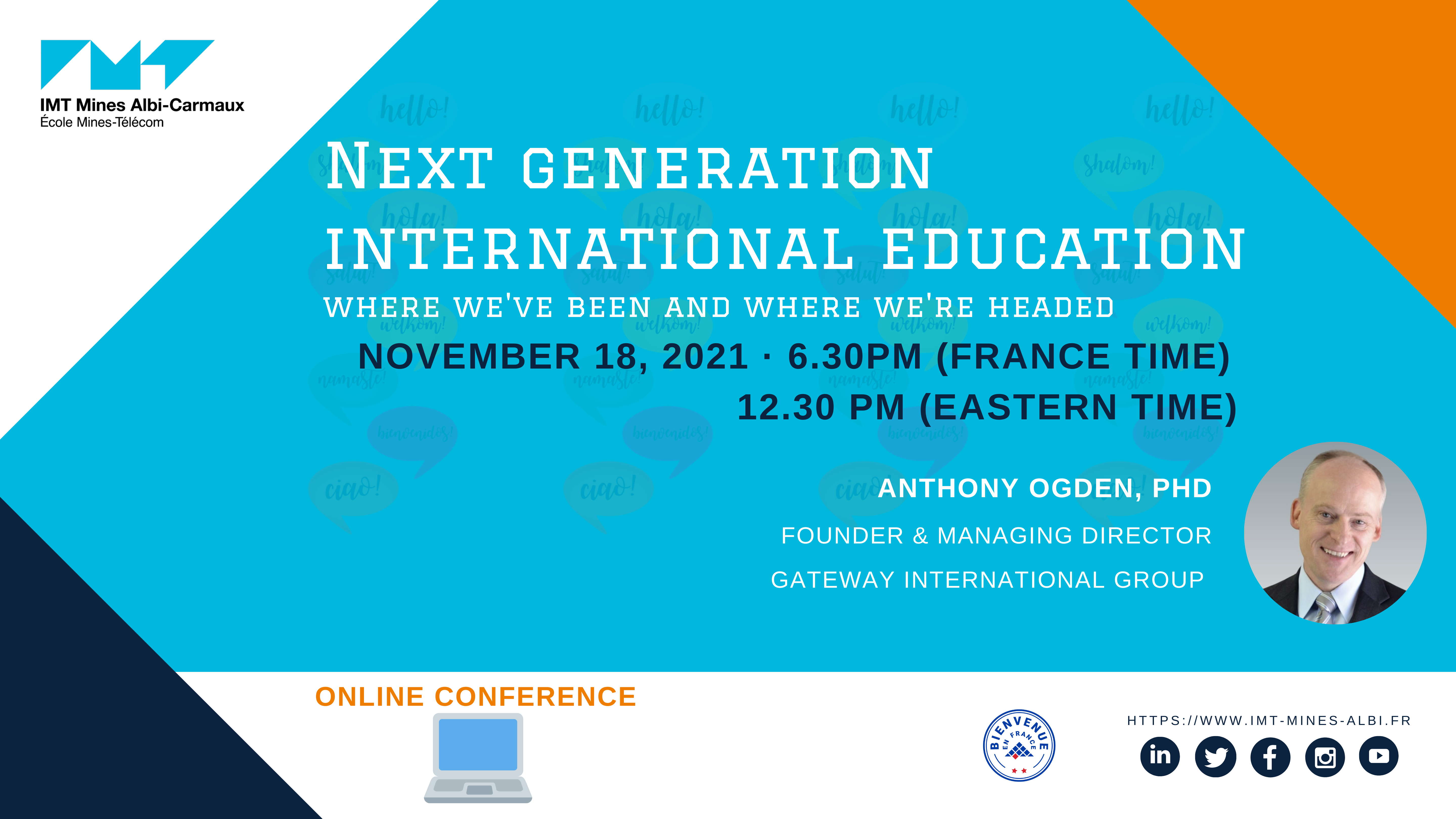 Dans le cadre de la 5ème édition de sa semaine internationale, IMT Mines Albi organise la conférence en ligne en anglais d'Anthony Ogden qui s’intitulera : "Next Generation International Education : where we've been and where we're headed".