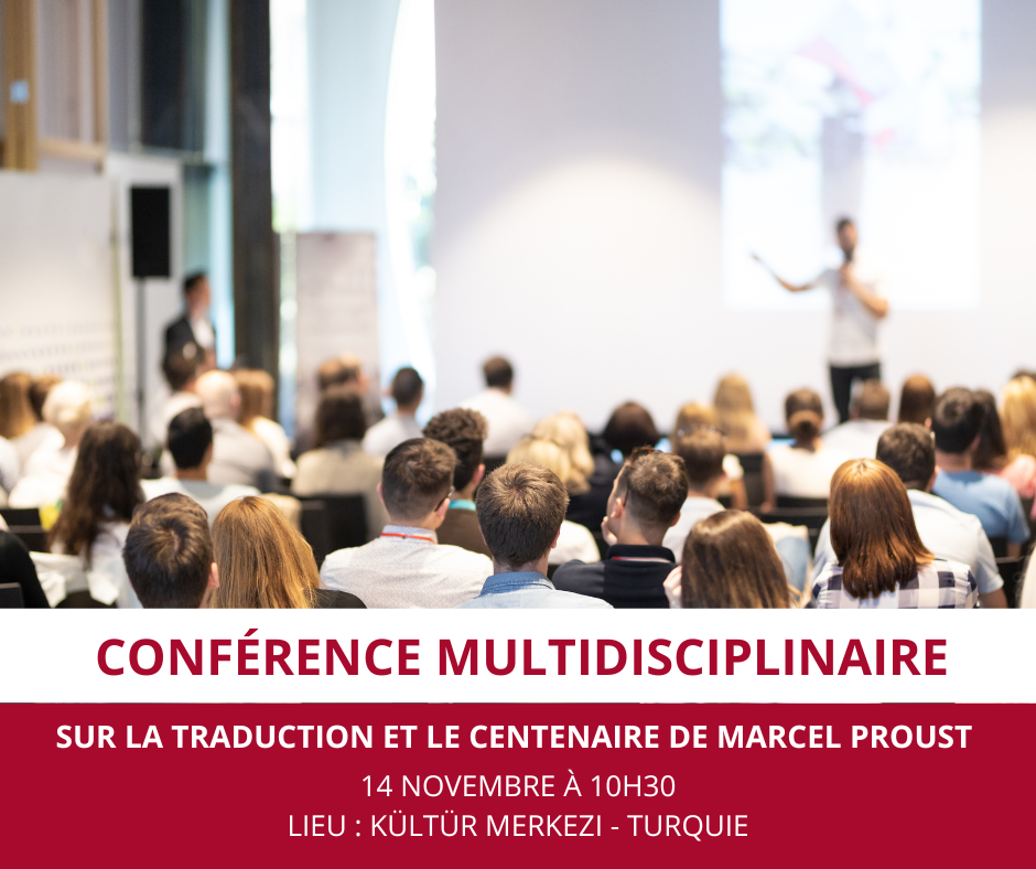 Le Département de Traduction-Interprétation de la Faculté des Lettres de l'Université Sivas Cumhuriyet (Turquie) organise une Conférence Multidisciplinaire sur la traduction et le centenaire de Marcel Proust le 14 novembre à partir de 10h30 à Kültür Merkezi.