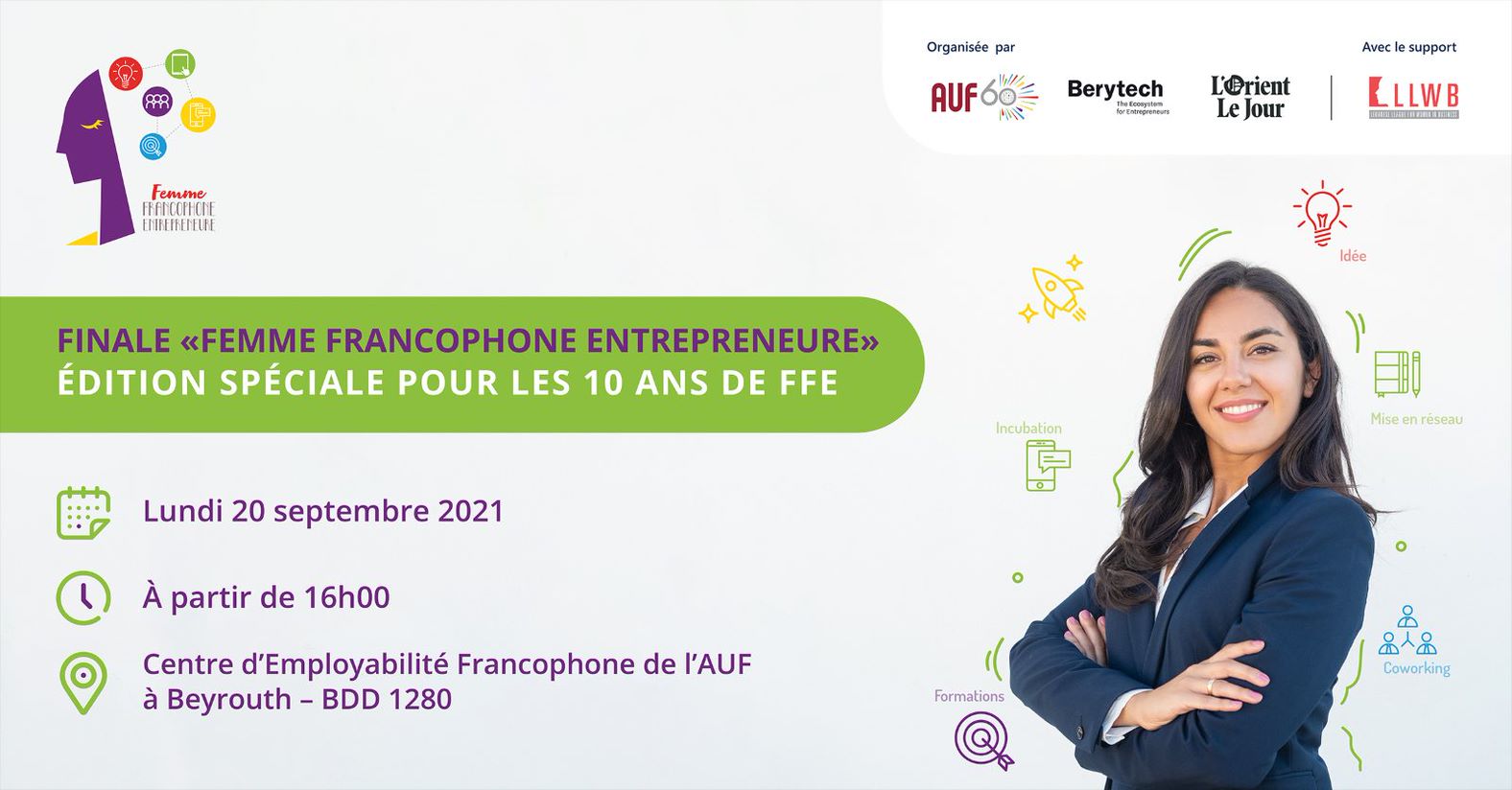 A l'occasion du 60ème anniversaire de l'AUF, le concours de l'entrepreneuriat féminin libanais « Femme Francophone Entrepreneure » marque et célèbre son dixième anniversaire. La finale de cette édition spéciale se tiendra le 20 septembre, à 16h, au CEF de Beyrouth, le jour de son lancement officiel.