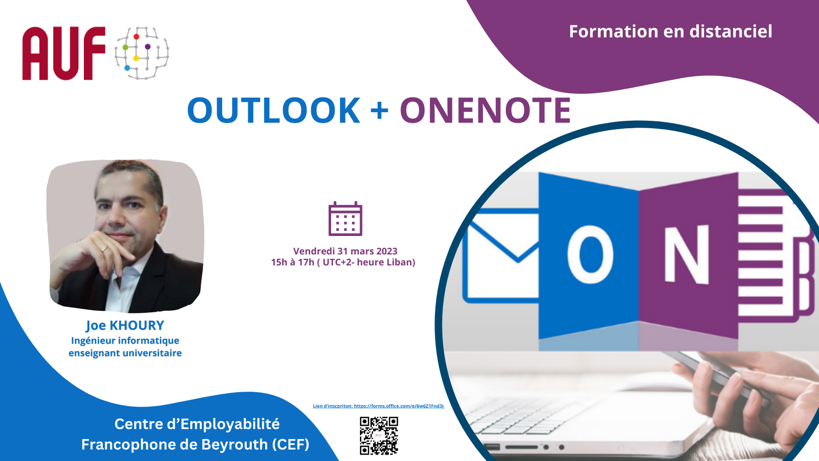 Le Centre d’Employabilité Francophone (CEF) de Beyrouth de l’AUF Moyen-Orient organise une formation « Outlook et OneNote » le 31 mars 2023, de 15h00 à 17h00, en mode distanciel.