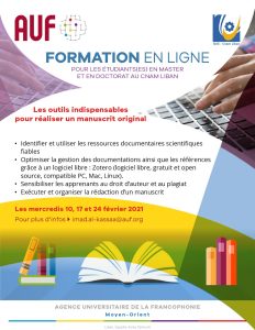 L'AUF Moyen-Orient via son Campus Numérique de Tripoli et la Faculté de sciences économiques et de gestion de l’Université Libanaise organisent une formation en ligne autour du thème « science des données en Python », du 1 au 5 février 2021.