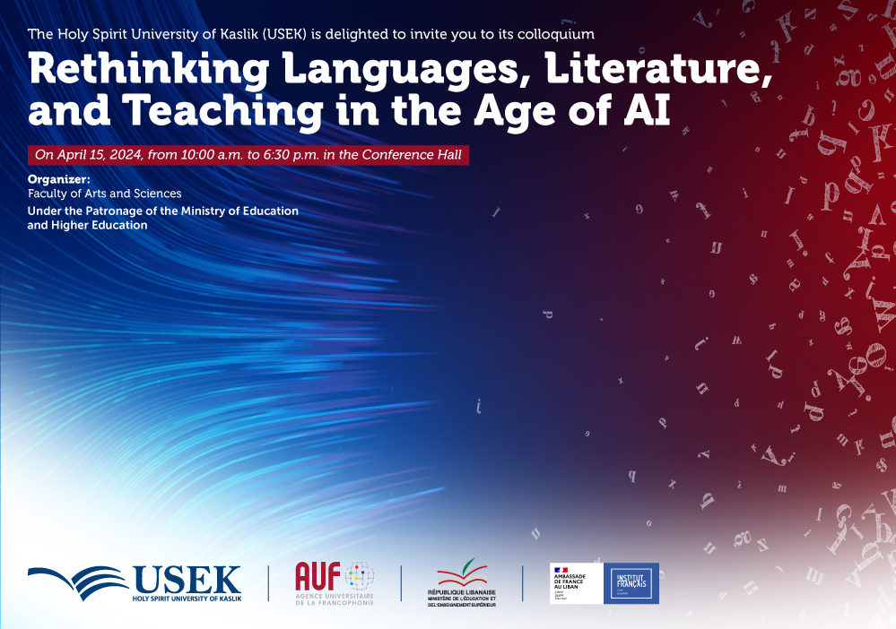 La faculté des Arts et des Sciences de l’Université Saint-Esprit de Kaslik organise un colloque trilingue sur les « Langues, lettres et Intelligence Artificielle » à Kaslik, le 15 avril 2024. L’AUF est partenaire de cette rencontre.
