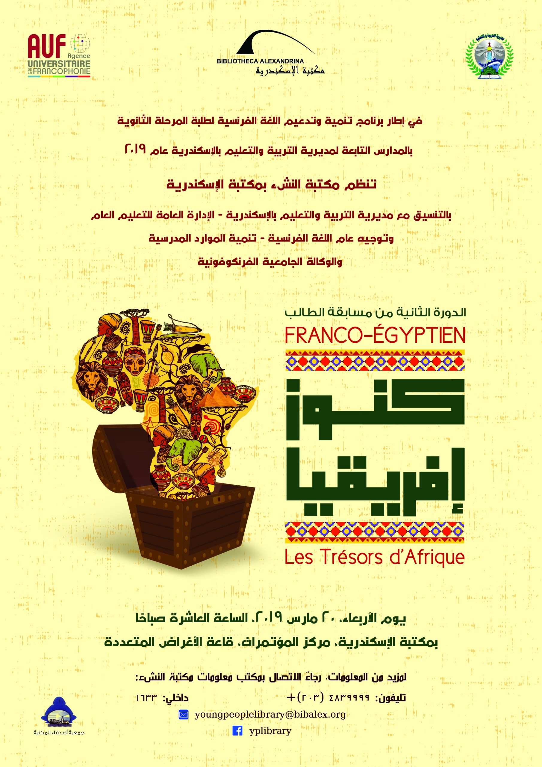 L’AUF en Égypte est partenaire du concours « Trésors d’Afrique », organisé par la bibliothèque des jeunes de la Bibliotheca Alexandrina en partenariat avec le ministère de l’Éducation.