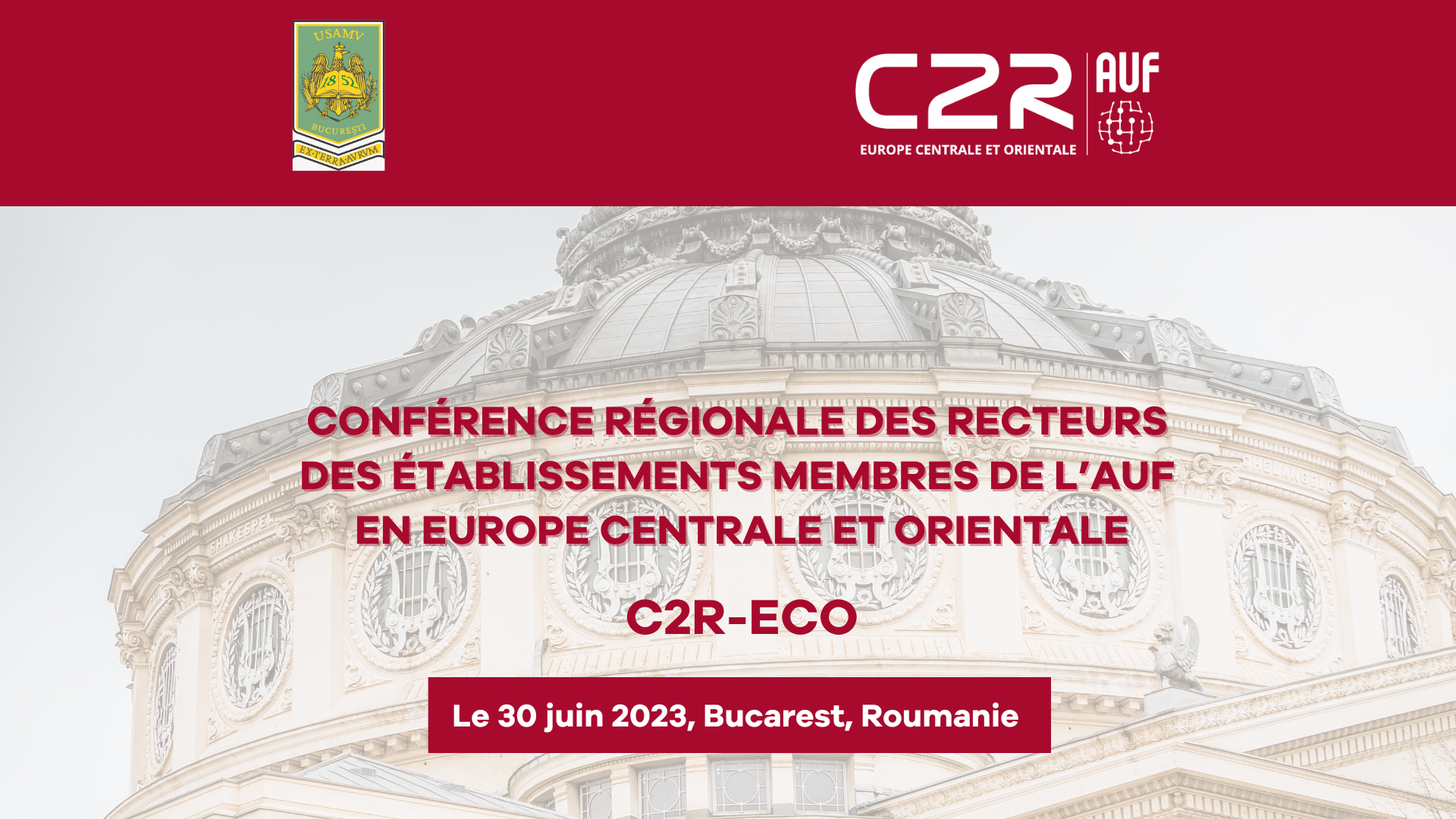 L’AUF en Europe Centrale et Orientale (AUF-ECO) organise la réunion constitutive de la Conférence Régionale des Recteurs des Établissements Membres de l’AUF en ECO (C2R-ECO). L’événement aura lieu le 30 juin 2023, à Bucarest, en présence du Recteur de l’AUF, Prof. Slim Khalbous et sera accueilli à l’Université de Sciences Agronomiques et de Médecine Vétérinaire de Bucarest par le Président du Conseil National des Recteurs Roumanie, M. Sorin Mihai Cimpeanu.