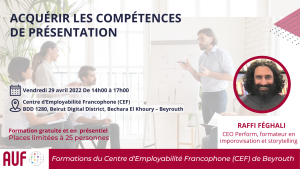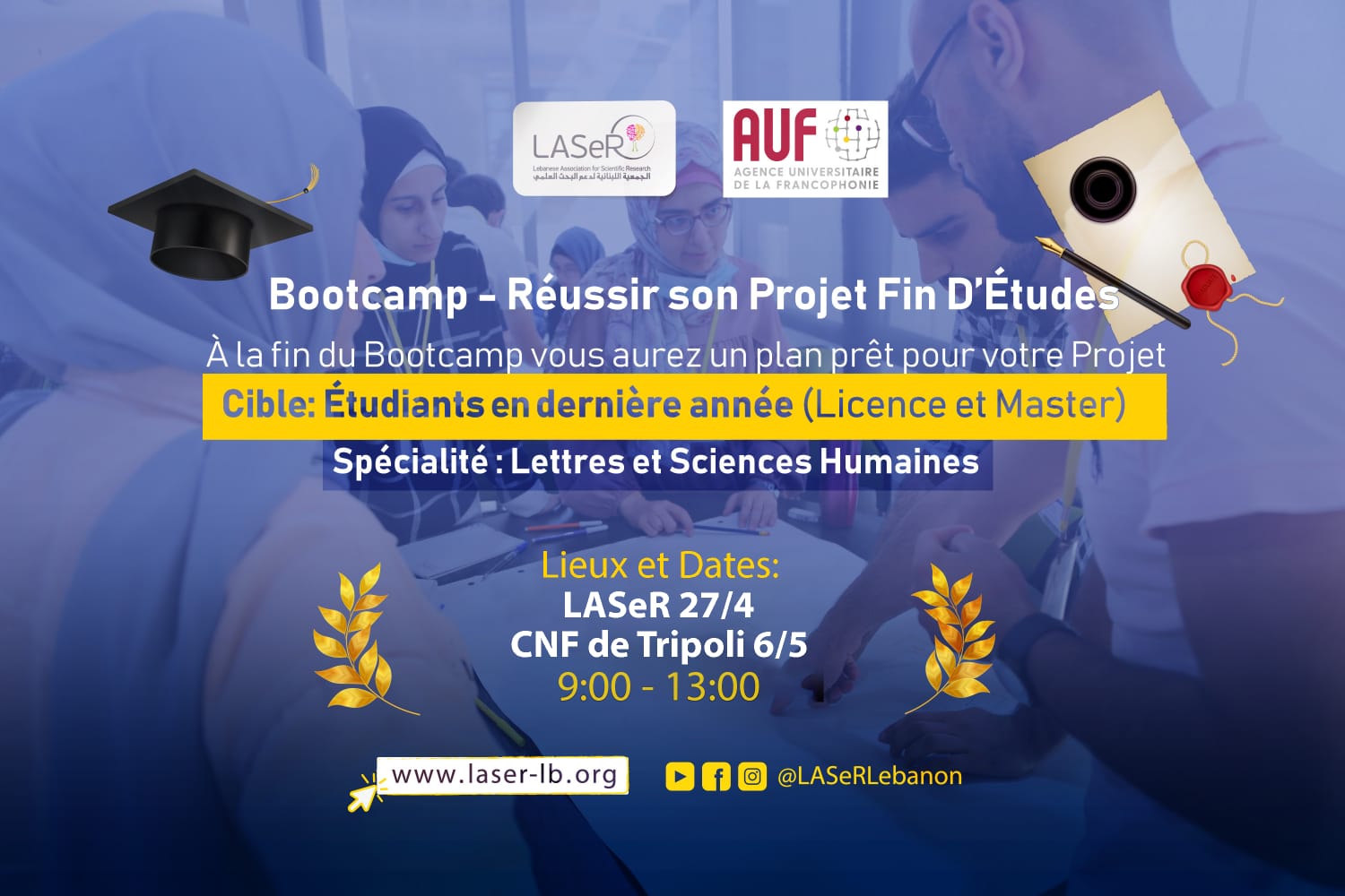 Le Campus Numérique Francophone de Tripoli organise en collaboration avec L’association LASeR une série de formations intitulée « Réussir son stage de Master ou son projet de fin d’étude » afin d'aider les étudiants à renforcer leurs compétences scientifiques et de la recherche. Ces formations sont réparties sur trois axes : Sciences, Littérature et Gestion.
