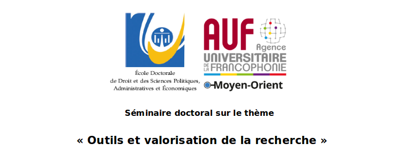 L’École doctorale de droit et des sciences politiques, administratives et économiques de l’Université Libanaise, en partenariat avec l'AUF au Moyen-Orient et le Consortium doctoral régional en économie et Gestion (CODEG), organise un séminaire doctoral sur le thème "Outils et valorisation de la recherche" le vendredi 27 octobre 2017 dans ses locaux à Sin El Fil.