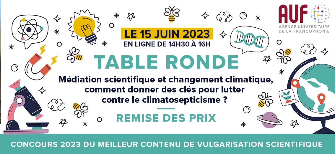 L’AUF-Europe Occidentale a décidé de mettre à l’honneur les 4 lauréat.e.s de son concours de vulgarisation en organisant le jeudi 15 juin une table ronde dédiée à la médiation scientifique en présence de spécialistes du domaine.