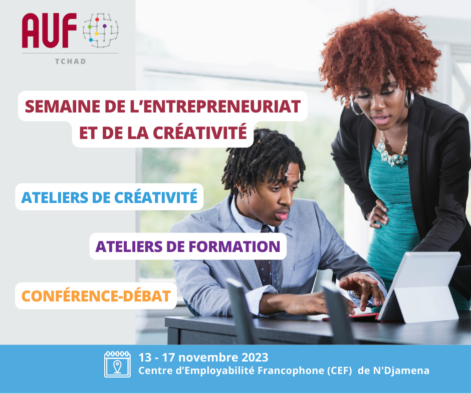 L’AUF – Tchad organise la semaine de l’entrepreneuriat et de la créativité, du 13 au 17 novembre 2023, au Centre d’Employabilité Francophone (CEF) de N’Djamena.