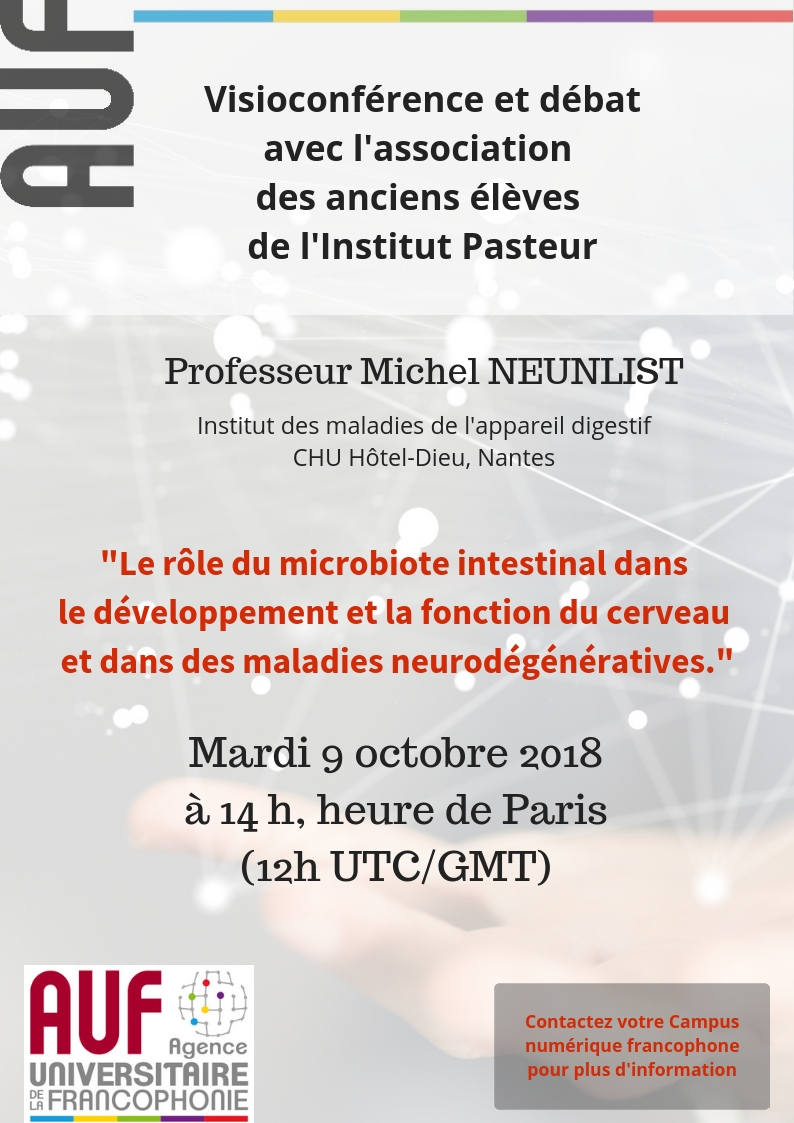 Visioconférence le 9/10/2018 : “Le rôle du microbiote intestinal dans le développement et la fonction du cerveau et dans des maladies neurodégénératives.”