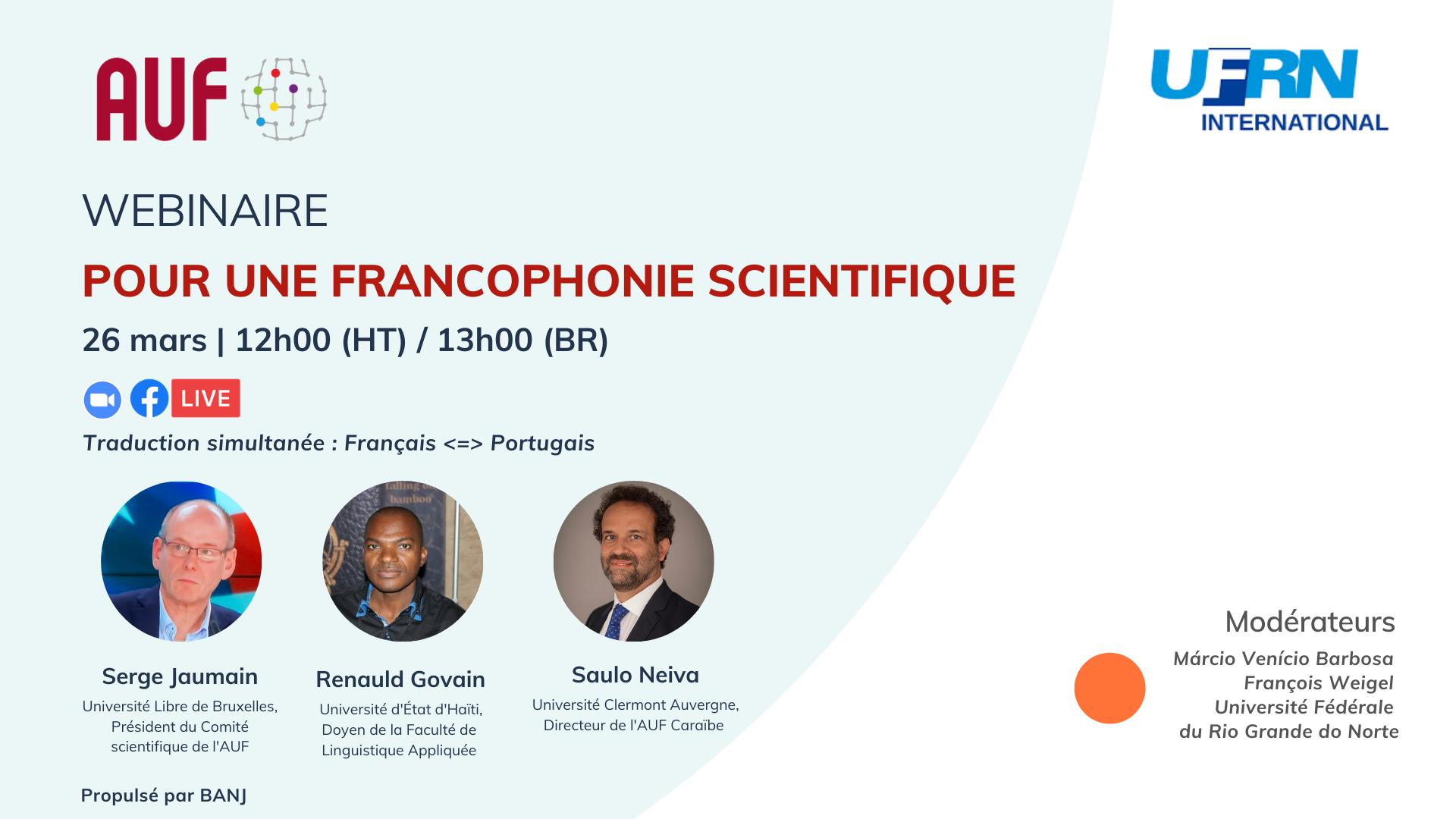 L'AUF et l'Université Fédérale du Rio Grande do Norte (UFRN) propose un débat avec trois enseignants-chercheurs pour évoquer la place du français dans les échanges intellectuels et universitaires, sa cohabitation avec d’autres langues au sein d’un même territoire et dans les institutions scientifiques, ainsi que le rôle de l’AUF dans l’articulation d’un réseau francophone de l’enseignement supérieur.