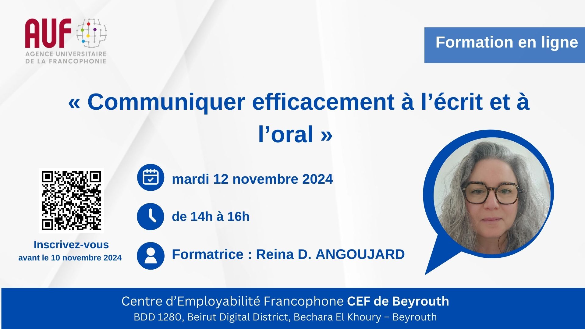 L’AUF Moyen-Orient organise un webinaire intitulé « Communiquer efficacement à l’écrit et à l’oral », dans le cadre des activités du Centre d'Employabilité Francophone (CEF) de Beyrouth.