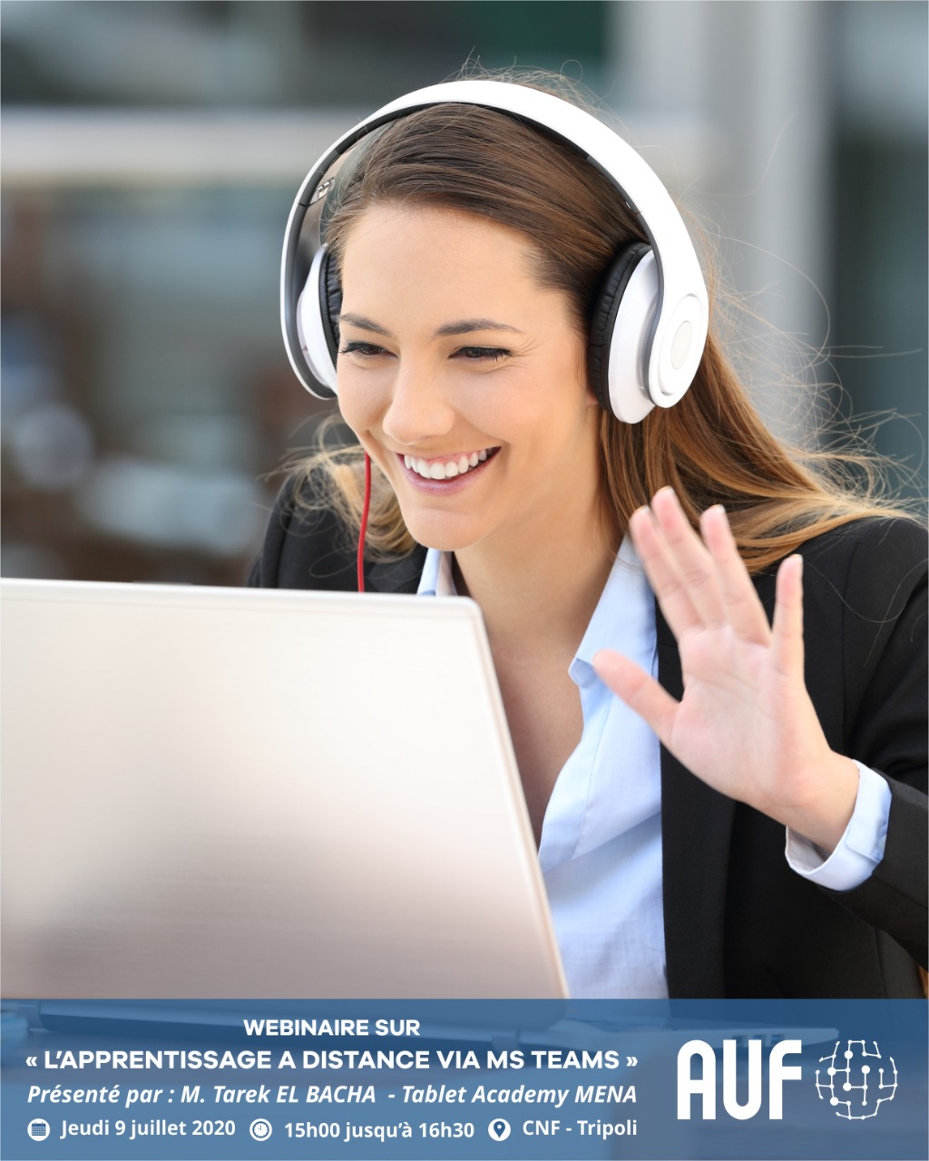 le CNF de Tripoli de l’AUF-Moyen-Orient organise un webinaire sur « L’apprentissage à distance via Ms Teams » le 9 juillet 2020, à 15h. Ce webinaire sera animé par M. Tarek EL BACHA, de Tablet Academy MENA.
