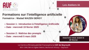 L’AUF Moyen-Orient organise une série de formations, à suivre en série ou de manière indépendante, sur le thème « Optimisez votre parcours professionnel » en présentiel, au CEF de Beyrouth. L'objectif de ces sessions est d’aider les étudiants à définir un projet professionnel cohérent et structuré.