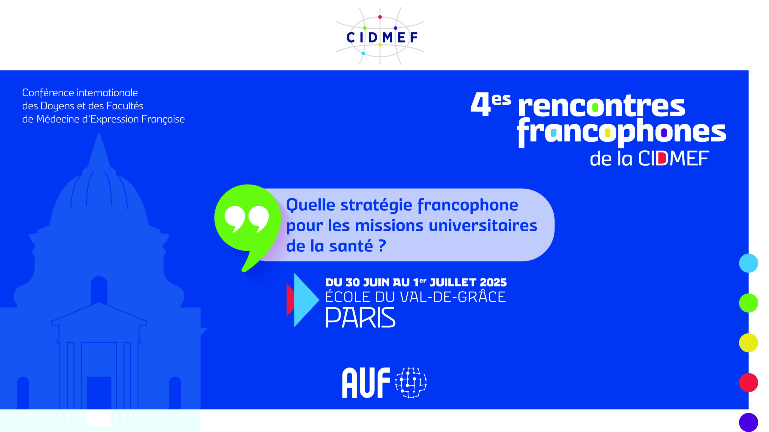 Les doyens des facultés de médecine d’expression française se réunissent à Paris pour repenser l’avenir de la santé en francophonie. Dans un contexte mondial en constante mutation, où les systèmes de santé doivent s’adapter aux nouveaux enjeux sanitaires, environnementaux et technologiques, la Conférence Internationale des doyens des facultés de médecine d’expression française (CIDMEF) donne rendez-vous à la communauté académique et scientifique francophone du 30 juin au 1er juillet 2025 à Paris, à l’occasion des 4e Journées francophones de la CIDMEF.
