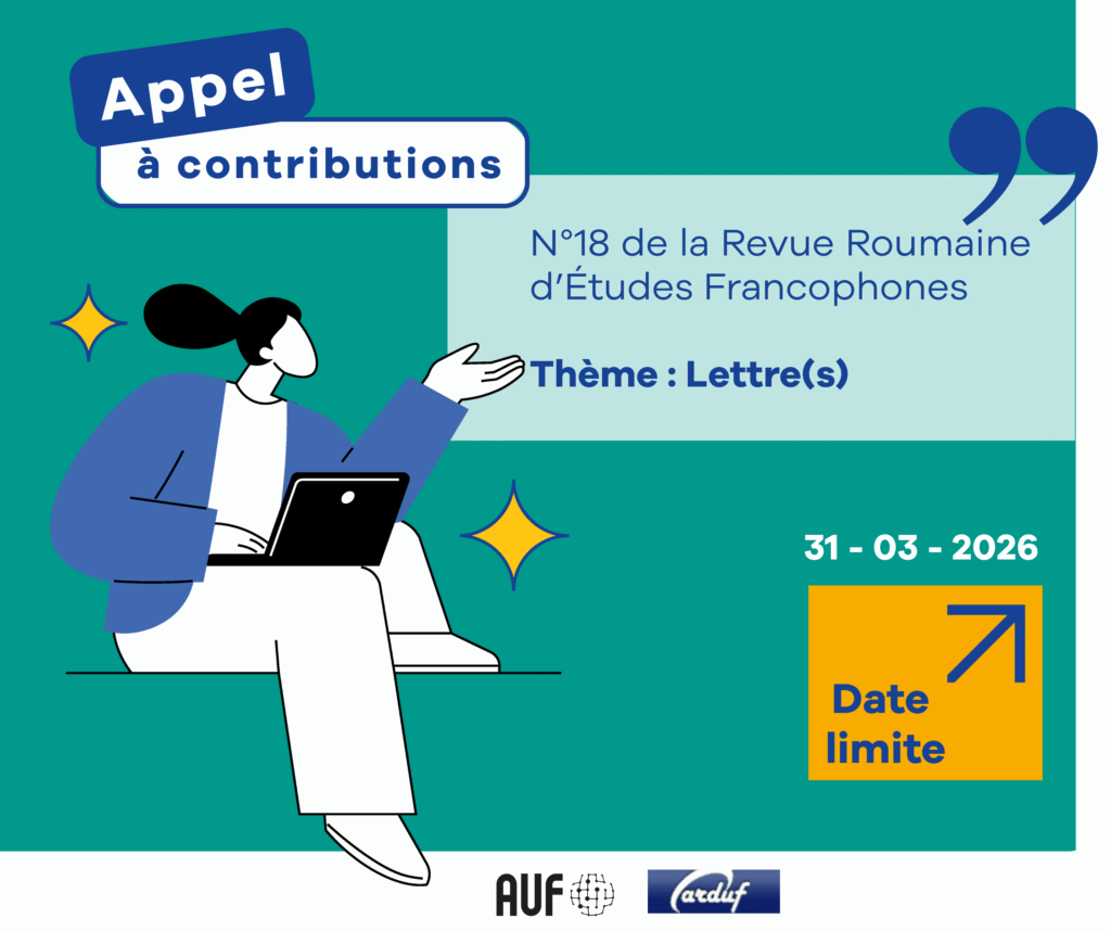 La Revue Roumaine d’Études Francophones (RREF), publication annuelle de l’Association Roumaine des Départements Universitaires Francophones (ARDUF), lance un appel à contributions pour son numéro 18/2026, consacré au thème « Lettre(s) ». Revue scientifique indexée (ERIH PLUS, EBSCO, DOAJ, etc.), la RREF accueille des travaux en littérature, linguistique et didactique, ainsi que des entretiens, comptes rendus et notes et documents.