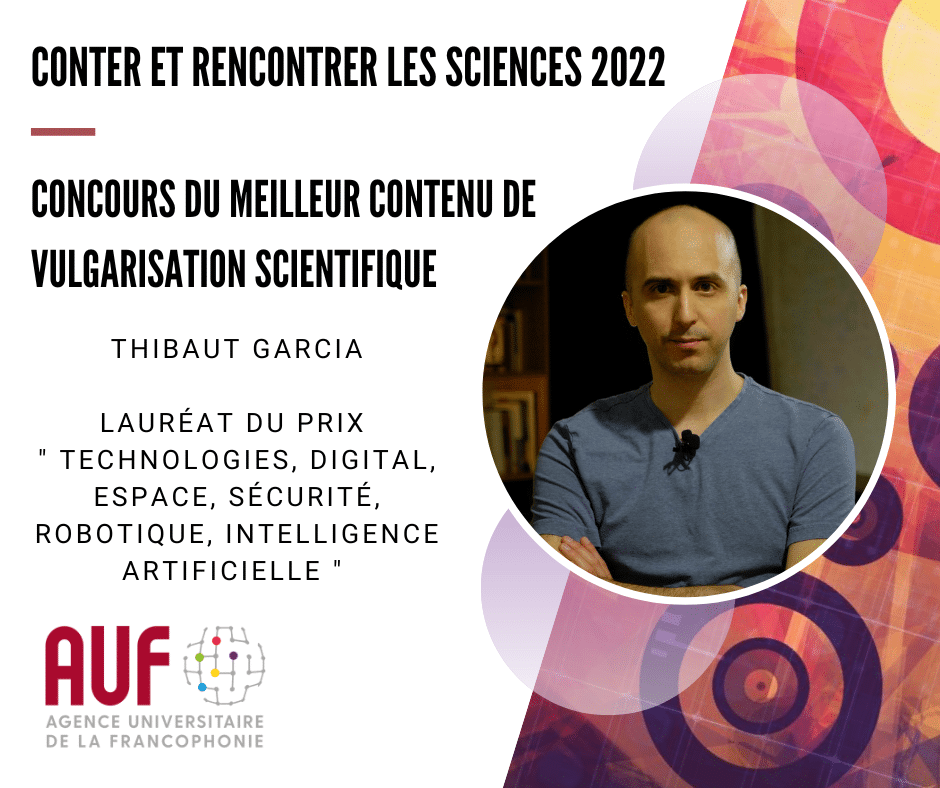 Thibaut Giraud est titulaire d’un doctorat en philosophie à l’Institut Jean Nicod (EHESS). Professeur de philosophie en lycée pendant quelques années, il a ensuite décidé de créer sa chaîne YouTube de vulgarisation philosophique “Monsieur Phi” et se consacre depuis quelques années à temps plein à la vulgarisation. Il a remporté en septembre le Prix du meilleur contenu scientifique dans la catégorie ” Technologies, digital, espace, sécurité, robotique, intelligence artificielle ” du Concours Conter et rencontrer les sciences 2022.