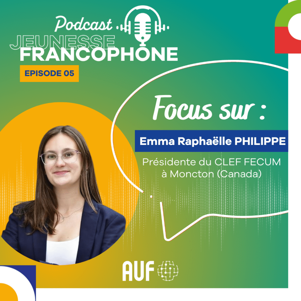 Dans cet épisode du podcast Jeunesse francophone, partez à la rencontre d’Emma, présidente du Club FECUM à Moncton (Canada), membre de l’AICLÉF *