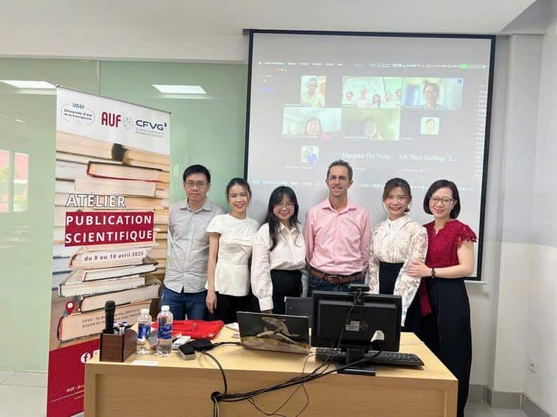 L’atelier « Publication scientifique » de la Direction régionale Asie-Pacifique de l’AUF s’est tenu au Centre franco-vietnamien de formation à la gestion à Hô Chi Minh-Ville, du 8 au 10 avril 2025 en format hybride, avec la participation de 9 enseignant·e·s et doctorant·e·s issu·e·s des établissements d’enseignement supérieur membres de l’AUF au Vietnam, en Nouvelle-Calédonie et en Thaïlande.
