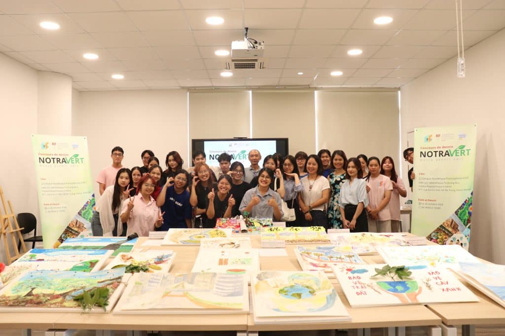 DO Xuân Anh, étudiante de l’Université de Langues et d’Études Internationales, Université nationale du Vietnam à Hanoi a partagé « Pour moi, le concours Notravert a été une expérience à la fois passionnante et nouvelle, car c’était la première fois que j’essayais de travailler avec des couleurs naturelles et que j’appliquais la technique du “cẩn trứng” sur papier pour transmettre un message environnemental. J’ai également été impressionnée par les œuvres des autres participants. »