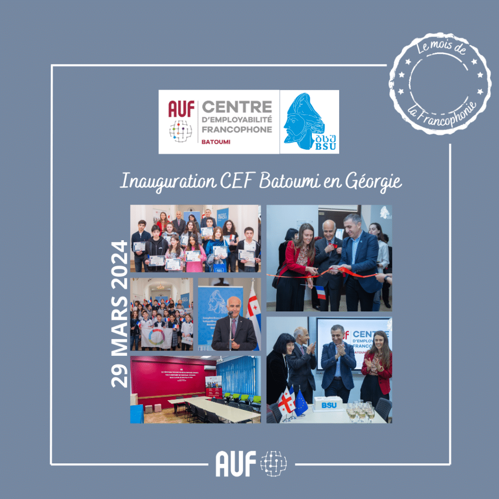 Un nouveau Centre d’Employabilité Francophone (CEF) Batoumi de Géorgie a ouvert ses portes avec le soutien de l’AUF à l’Université d’Etat Shota Roustaveli. La cérémonie d’inauguration a été organisée le 29 mars 2024, à l’occasion de la célébration de la Mois de la Francophonie.