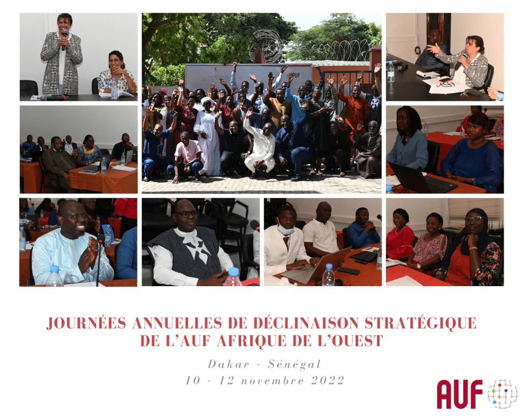 Du 10 au 12 novembre 2022, l’AUF Afrique de l’Ouest a tenu ses Journées annuelles de déclinaison stratégique (JADS). Le personnel, venu de dix pays, a travaillé sur trois axes : diplomatie scientifique francophone, offre des CNF 5.0 et formations des Centres d’employabilité francophones.