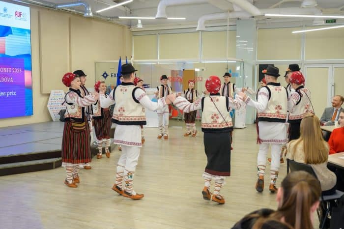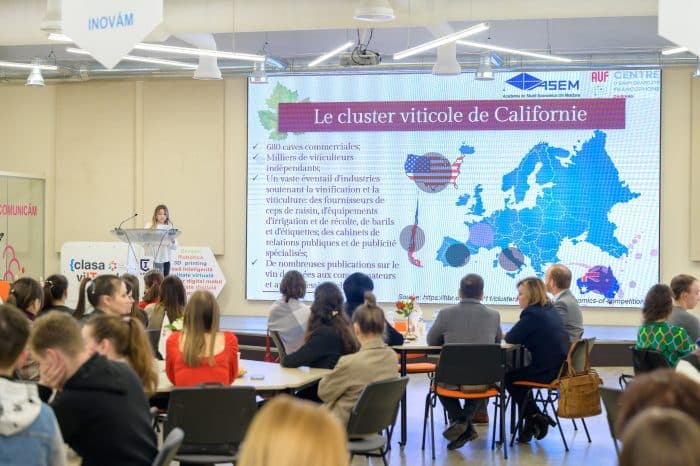 Cet événement convivial et festif a été marquée par quelques temps forts : la présentation de la recherche « Le Cluster vinicole en République de Moldova : les marques à succès et leur potentiel d’exportation » par l’étudiante en III-ième année Adriana Grajdeanu de la filière francophone « Relations économiques internationales » de l’Académie d’Etudes Economiques de Moldova ; L’interprétation de la chanson « Idiss », paroles et musique composées par Amelia Boscaneanu et Contanta Digor, élèves au Lycée à classes bilingues « Ion Luca Caragiale » de Orhei ; La prestation du groupe folklorique « Romanița » du Centre d’Excellence en Médecine et Pharmacie « Raisa Pacalo » de Chisinau qui a clôturé la cérémonie avec deux danses populaires moldaves.