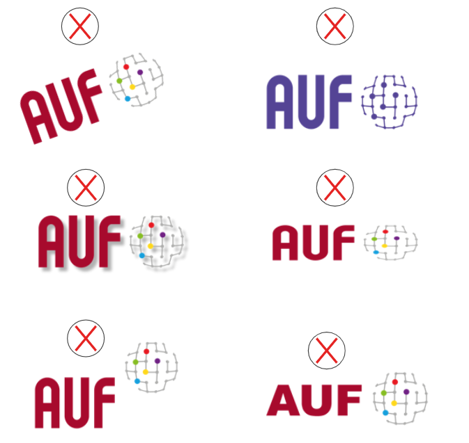 Le logotype « AUF » est placé à gauche quand « AUF » est à l’initiative de l’opération. Il est placé à droite quand l’action est à l’initiative du partenaire.
