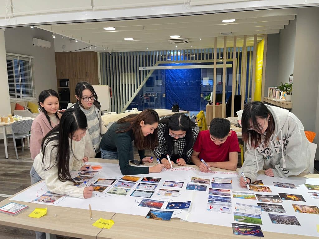 Chaque groupe de 6 à 8 personnes a participé activement à la création de sa propre « fresque », mettant en évidence les interactions complexes entre les causes et les effets du changement climatique.
