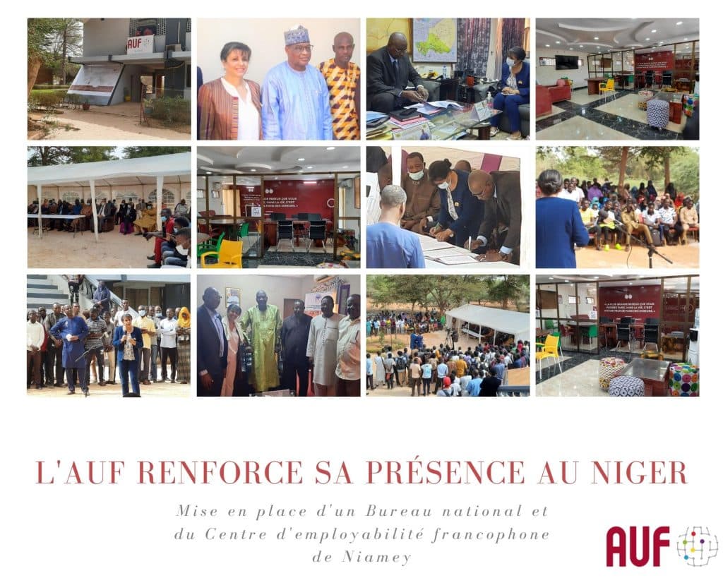 La mission de la Directrice régionale de l’AUF Afrique de l’Ouest a débuté par l’inauguration du Centre d’employabilité Francophone de Niamey et la mise en place du Bureau national de l’AUF Niger en présence du ministre de l’Enseignement supérieur et de la recherche, M. Mamoudou DJIBO, du Recteur de l’Université Abdou Moumouni Niamey, M. Saîdou MAMADOU et de la plupart des Recteurs et directeurs généraux des établissements membres de l’AUF.