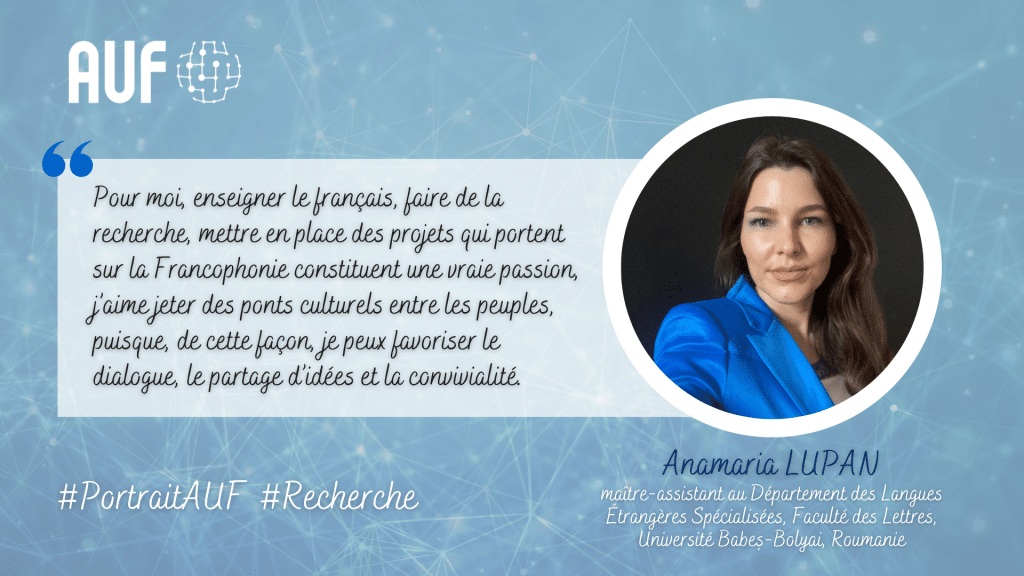 Nous vous invitons à découvrir le portrait de Mme Anamaria LUPAN, maître-assistant au Département des Langues Étrangères Spécialisées de la Faculté des Lettres, de l’Université Babes-Bolyai de Roumanie.