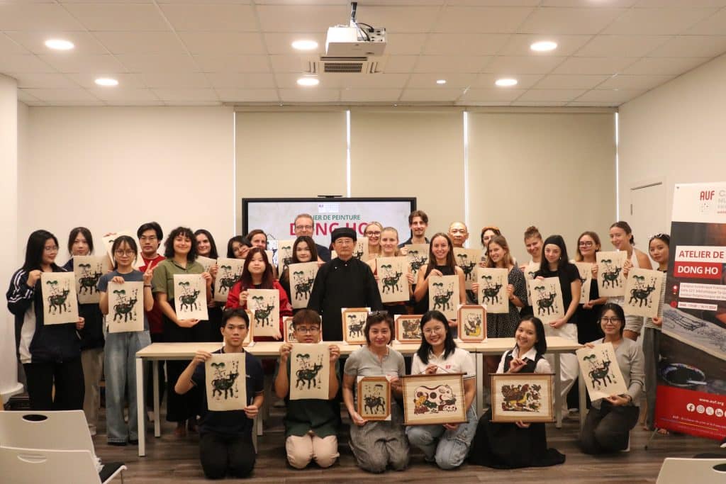 Poursuivant sa série d’événements culturels et artistiques couronnés à succès, tels que le concours de dessin « Notravert » et les journées culturelles dédiées à la France, au Laos, au Maroc et au Vietnam en octobre et début novembre, le Campus Numérique Francophone (CNF) de Hanoï a organisé, le 16 novembre, un atelier de peinture Dong Ho – une forme traditionnellede peinture vietnamienne, qui a attiré une cinquantaine d’étudiants francophones.