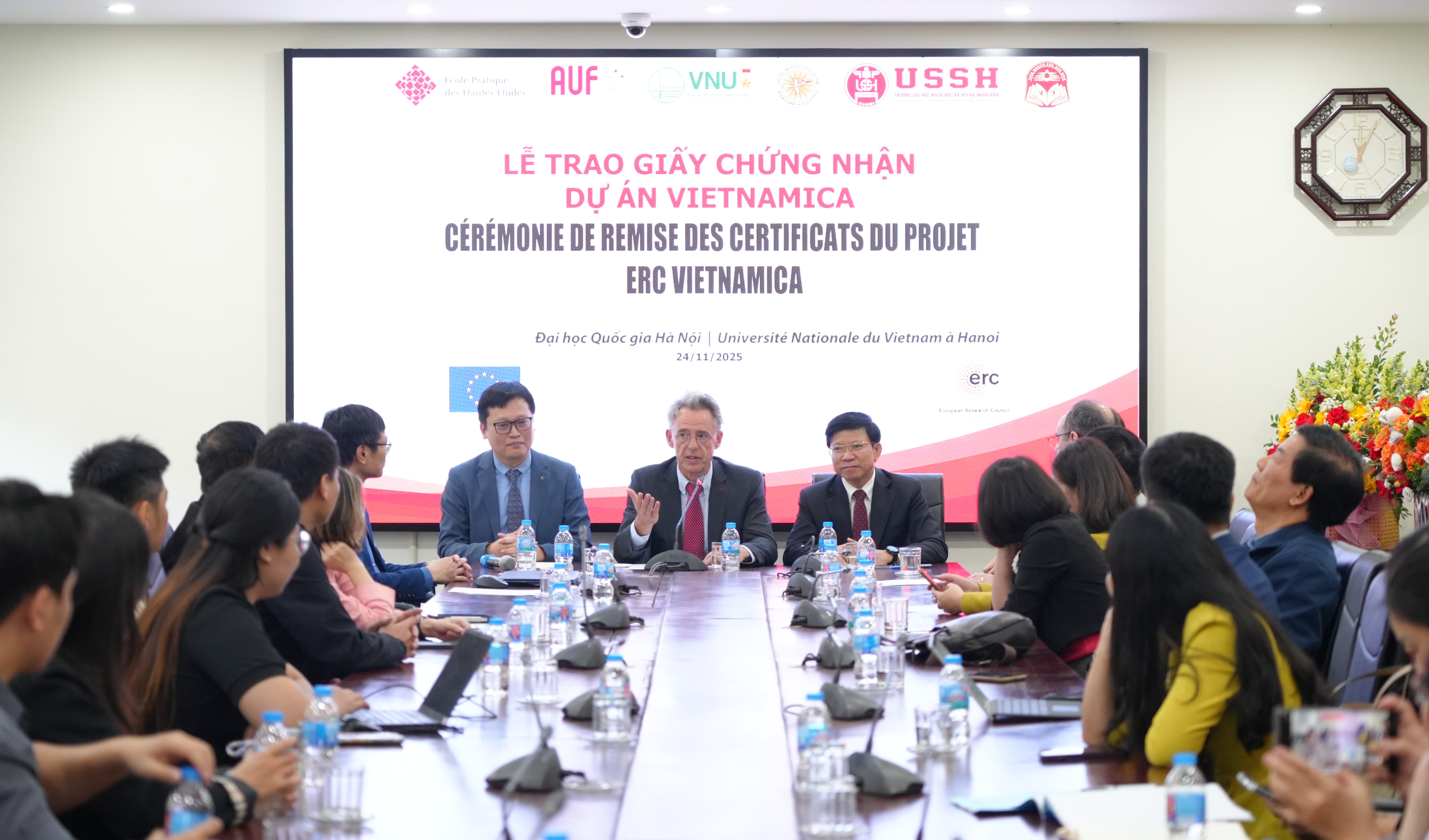 Le 24 novembre 2024, à l’Université des Sciences sociales et humaines, Université nationale du Vietnam à Hanoï (USSH-UNV Hanoï), le Comité directeur du projet Vietnamica a organisé la cérémonie de remise des certificats aux doctorants, étudiants et jeunes chercheurs ayant participé au projet.