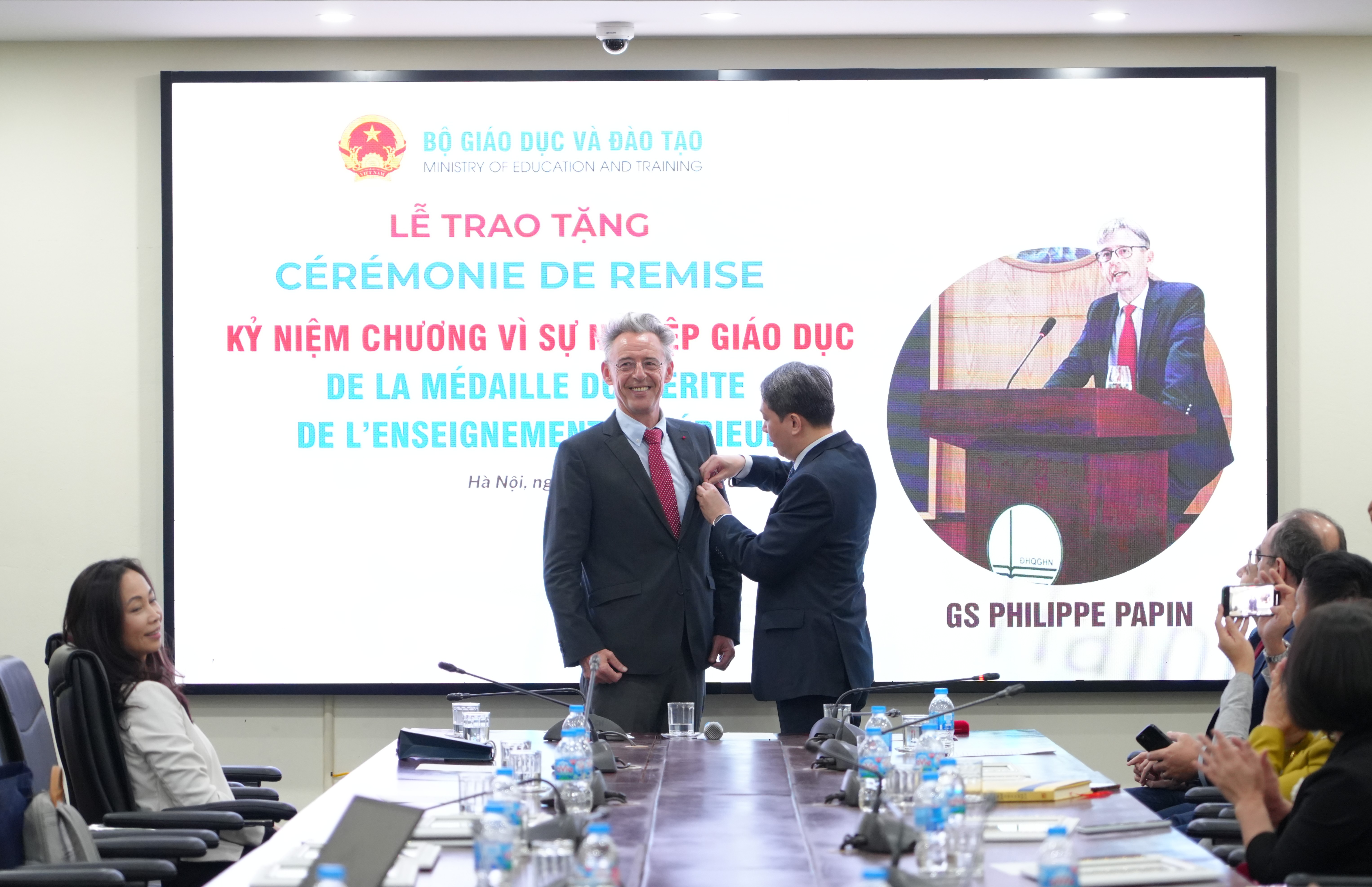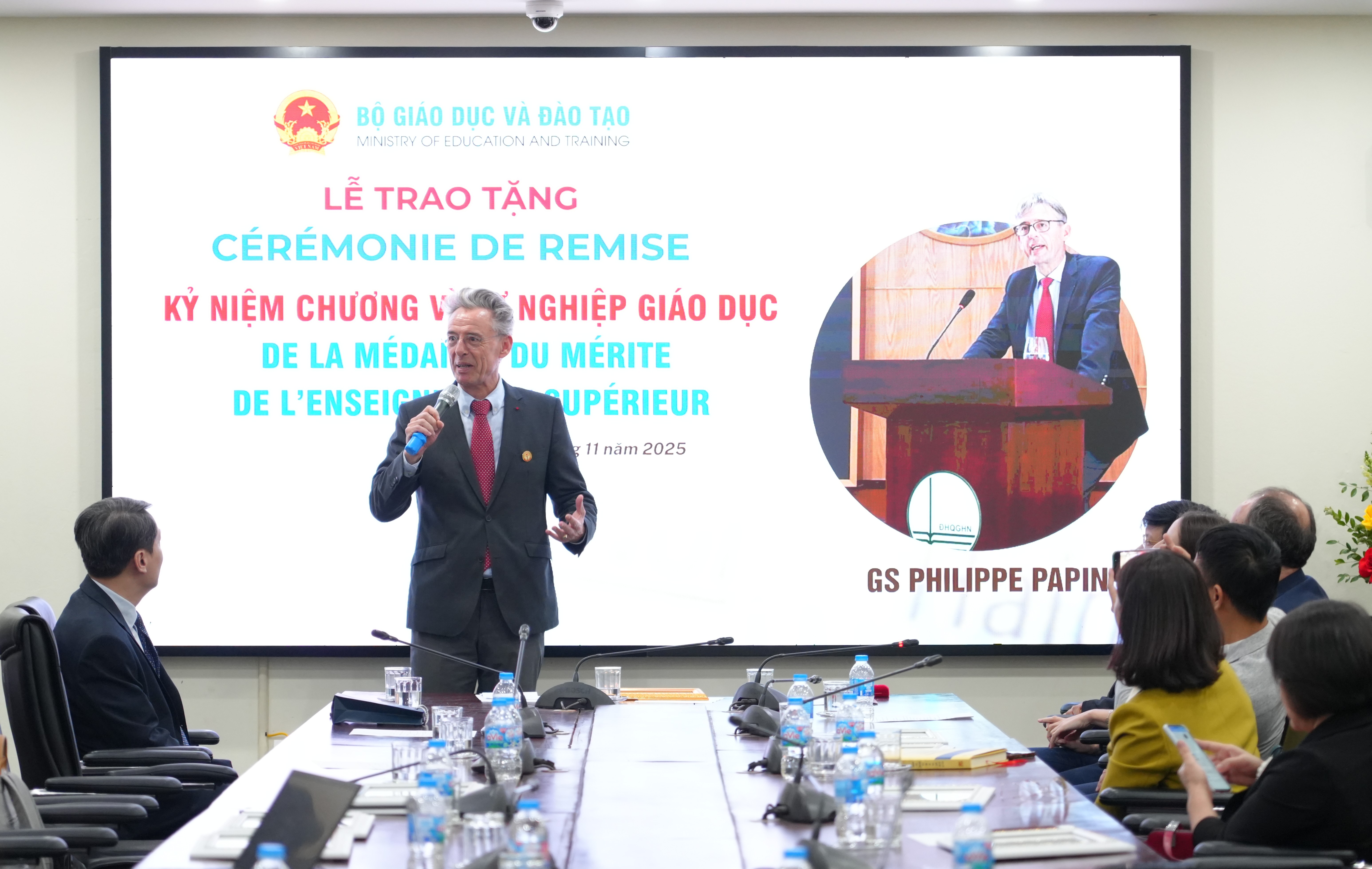 Le 22 novembre 2025, le ministre de l’Éducation et de la Formation, M. Nguyen Kim Son, a signé la décision d’attribuer la médaille du « Mérite de l’enseignement supérieur », une médaille prestigieuse décernée aux personnes ayant apporté des contributions remarquables au développement de l’éducation du Vietnam au Prof. Philippe Papin. La remise de cette distinction a eu lieu à l’occasion de la cérémonie de clôture du projet Vietnamica.