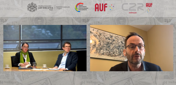 Andrea Torres Perdigón, de l’Université pontificale Javeriana à Bogota et présidente de la Commission Recherche et Valorisation de la C2R Amériques, a ouvert la rencontre en soulignant l’importance d’un dialogue constant entre les langues dans la production scientifique. Elle était accompagnée notamment de Xavier North (Alliance Française, Paris), Nicolas Morales et Aymeric Durez (Université pontificale Javeriana, Bogota), Barbara Lopes (Université de la Plata, Argentine), Víctor Montoya (Université nationale de Tres de Febrero, Buenos Aires), Adelaïde Russo (Université de l’État de Louisiane, Bâton Rouge), et Cathia Papi (Université TÉLUQ, Québec), cette dernière étant également membre du Comité international des rédacteurs en chef francophones de l’AUF.